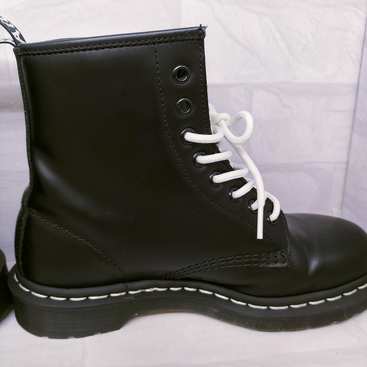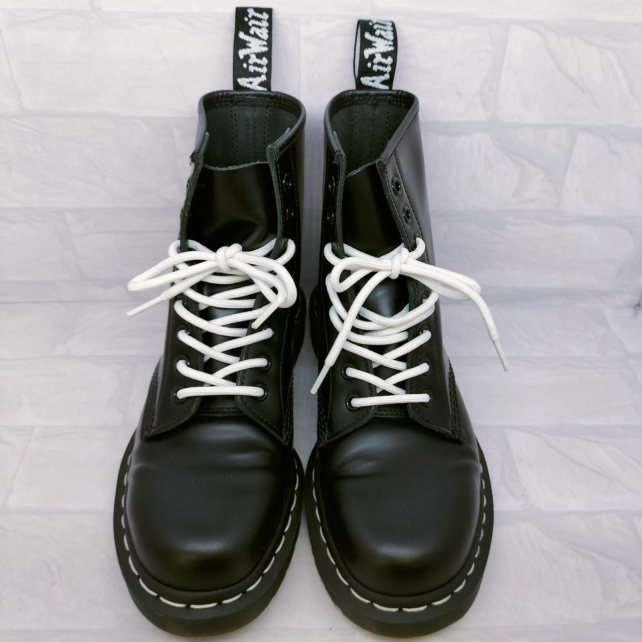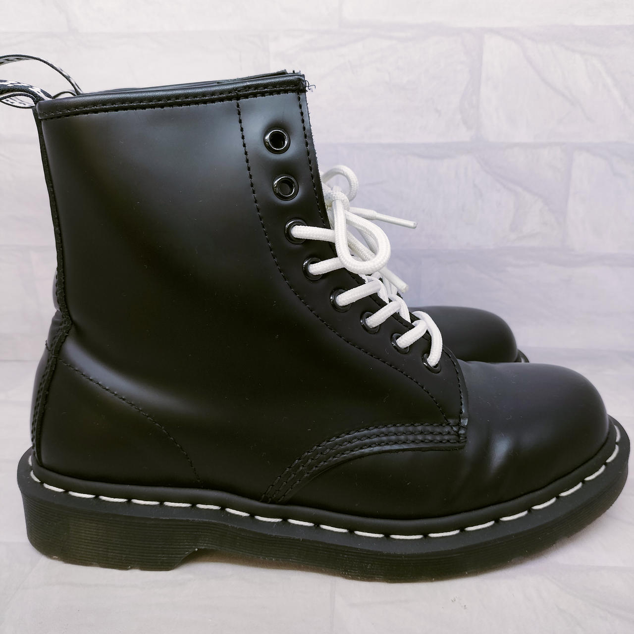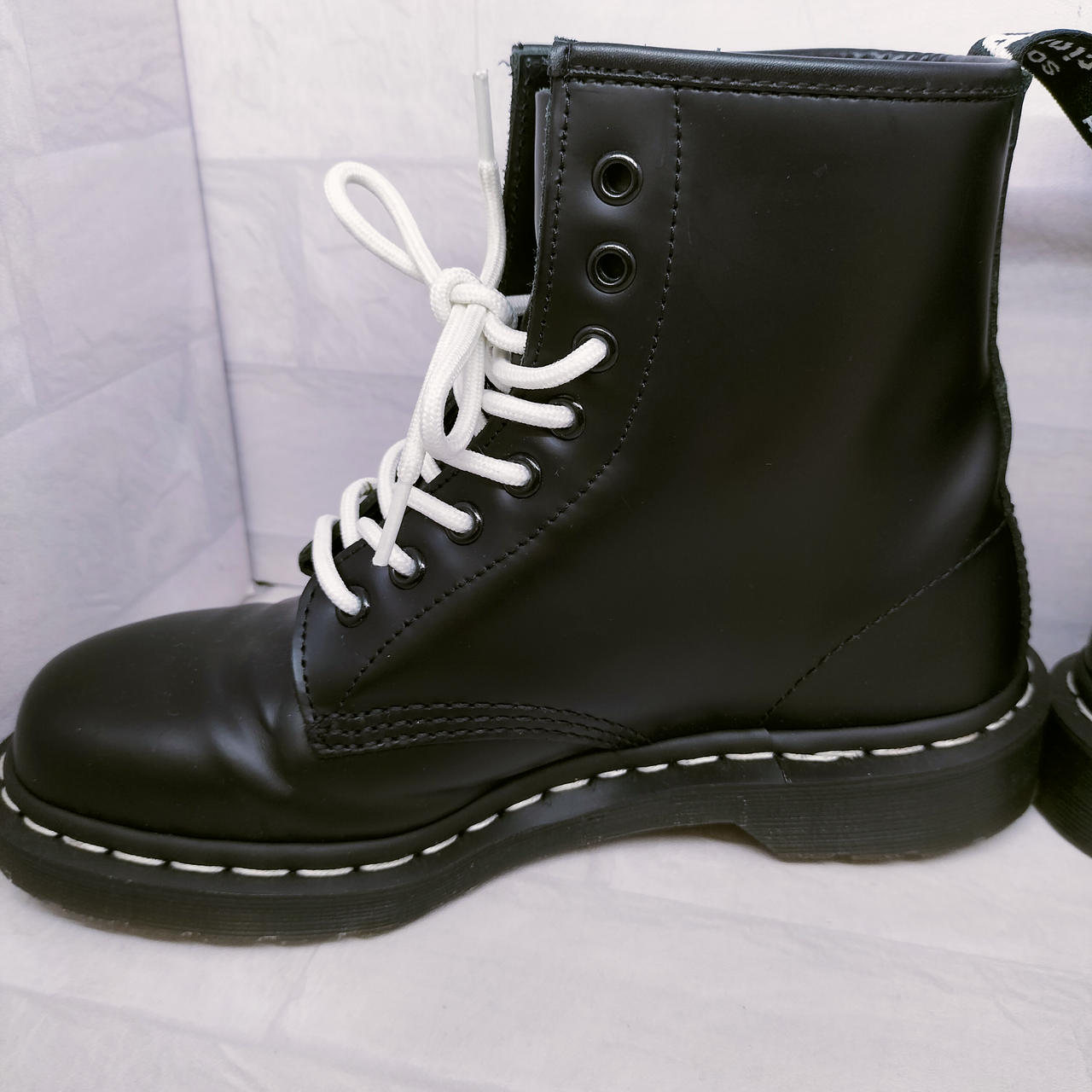 ホワイトステッチの8ホールブーツ |