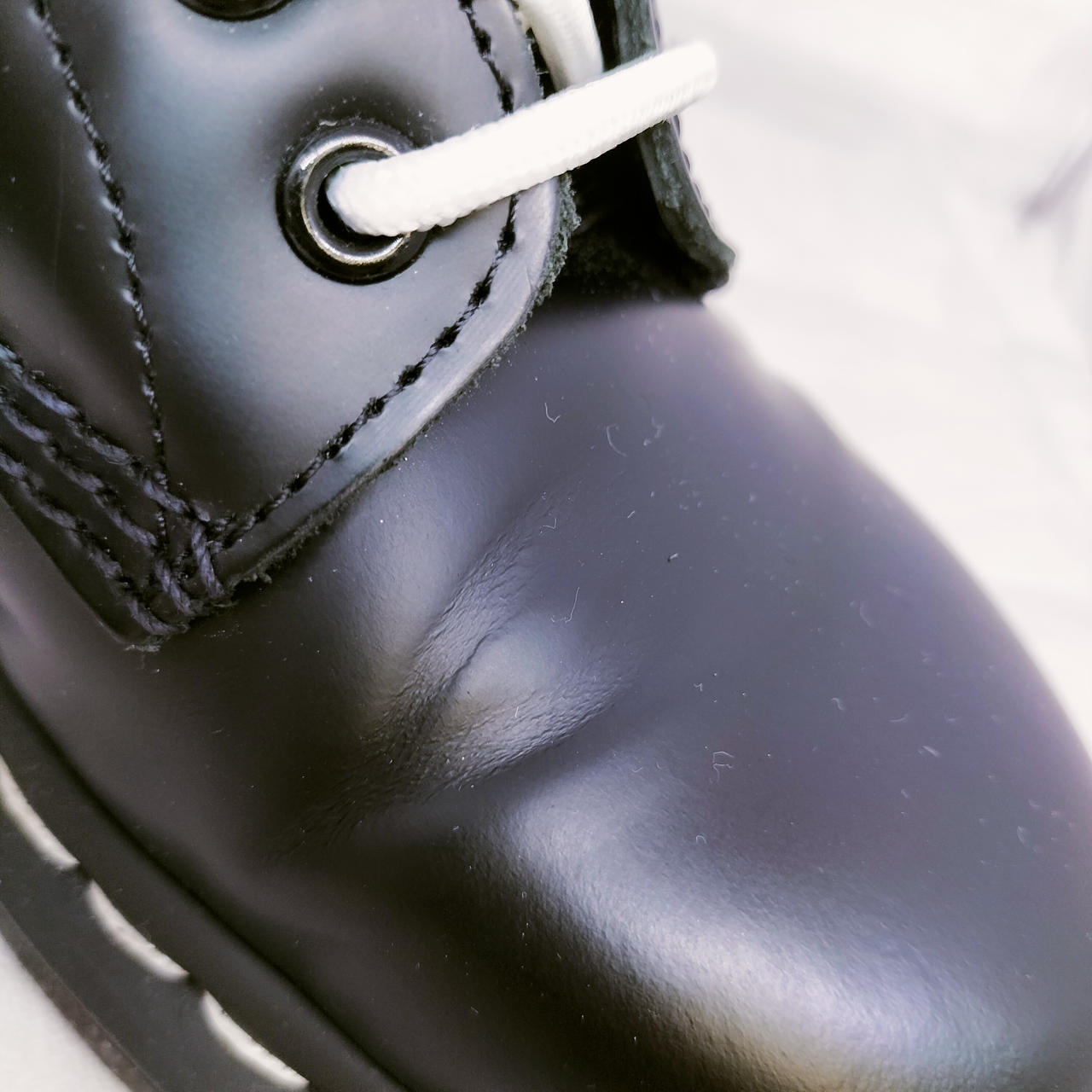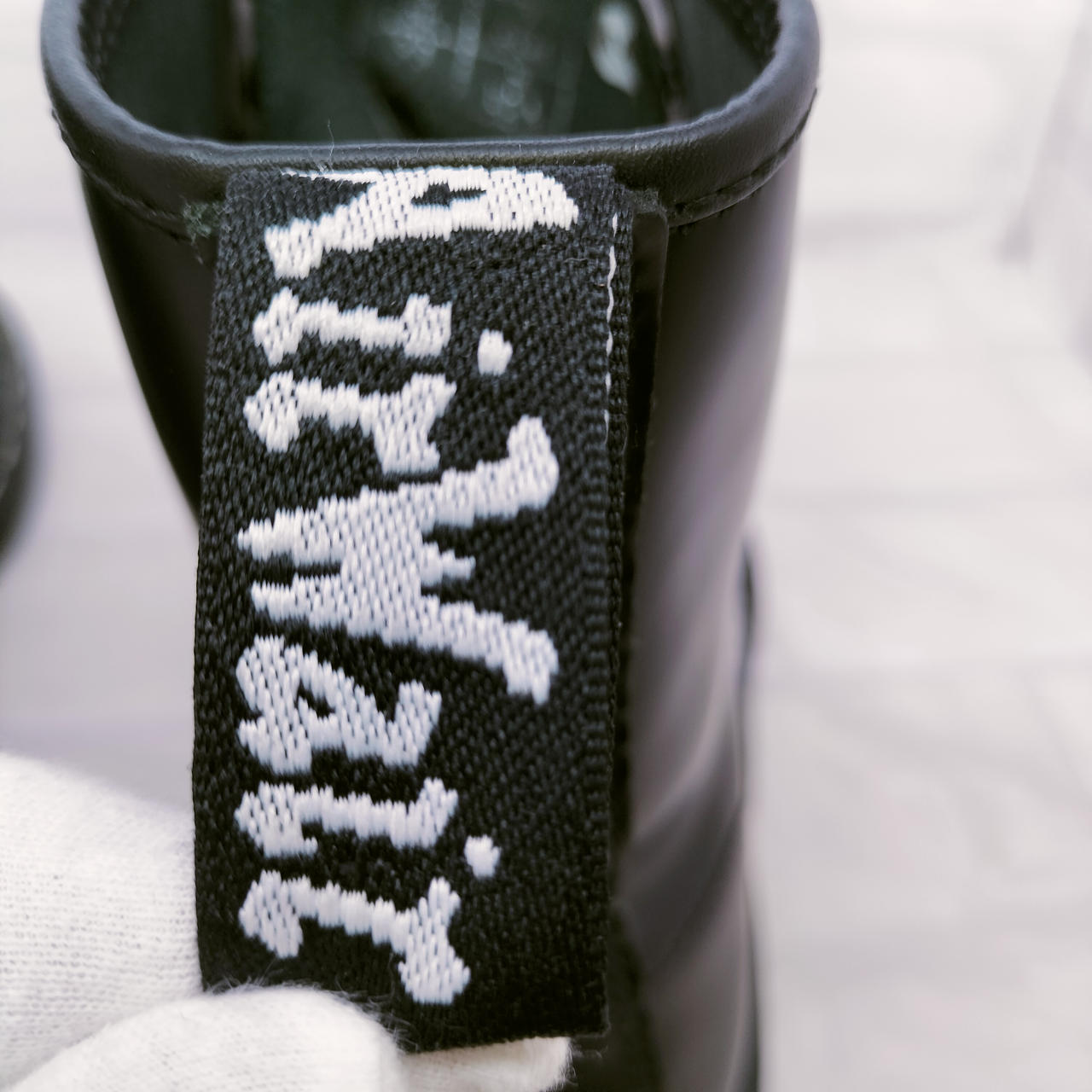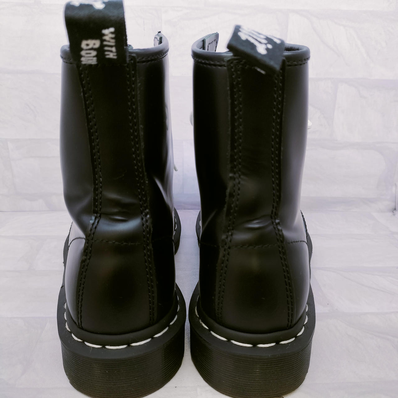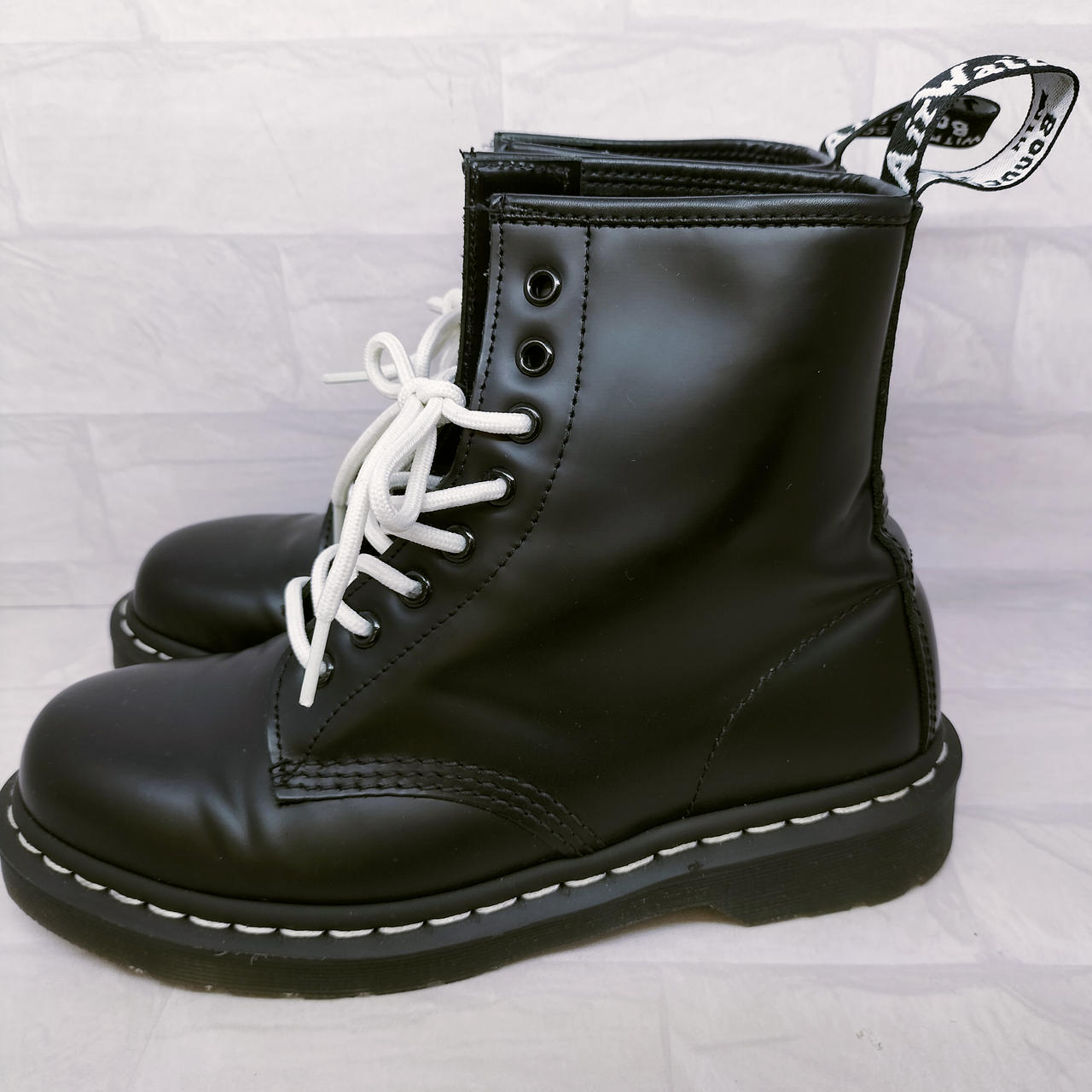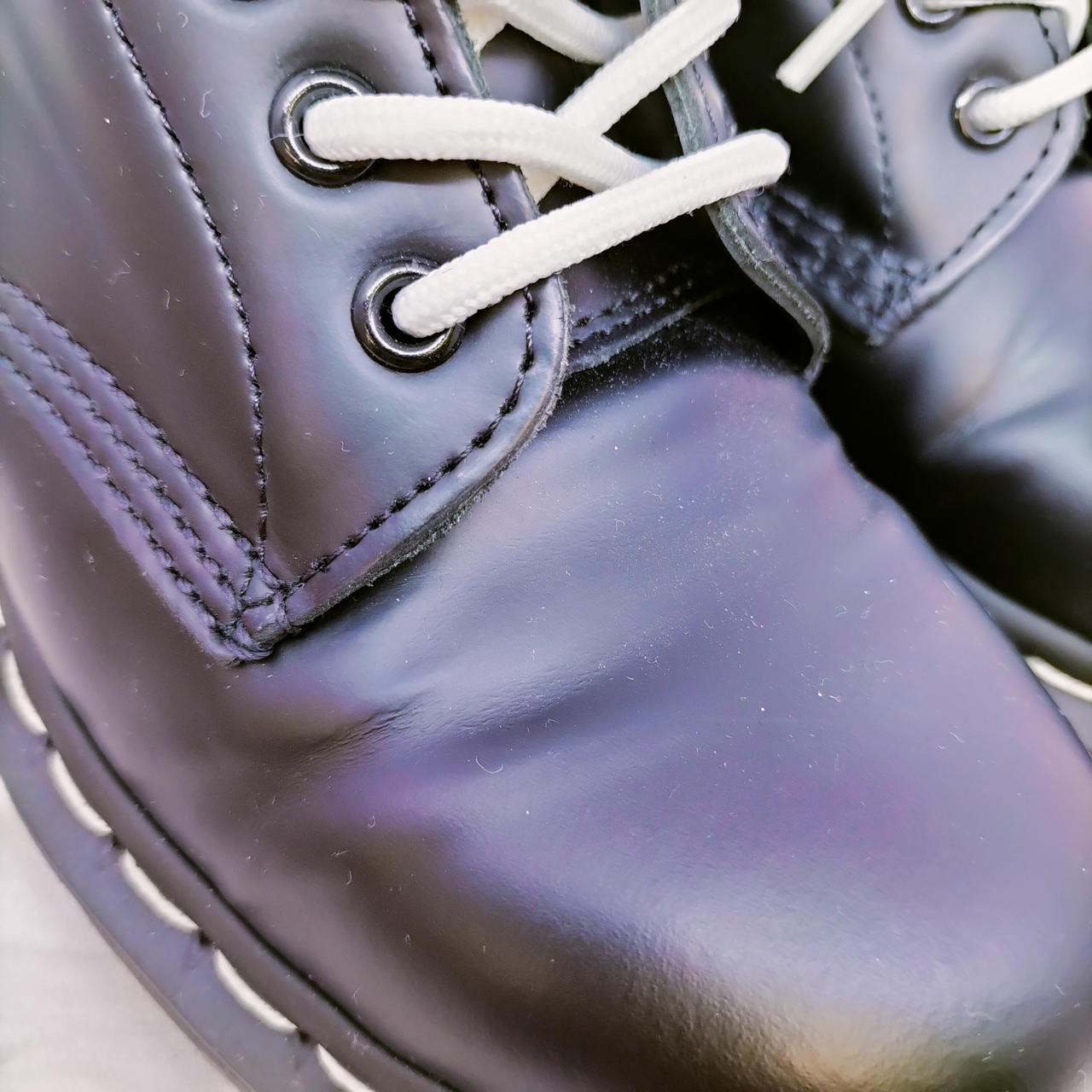 ホワイトステッチの8ホールブーツ |