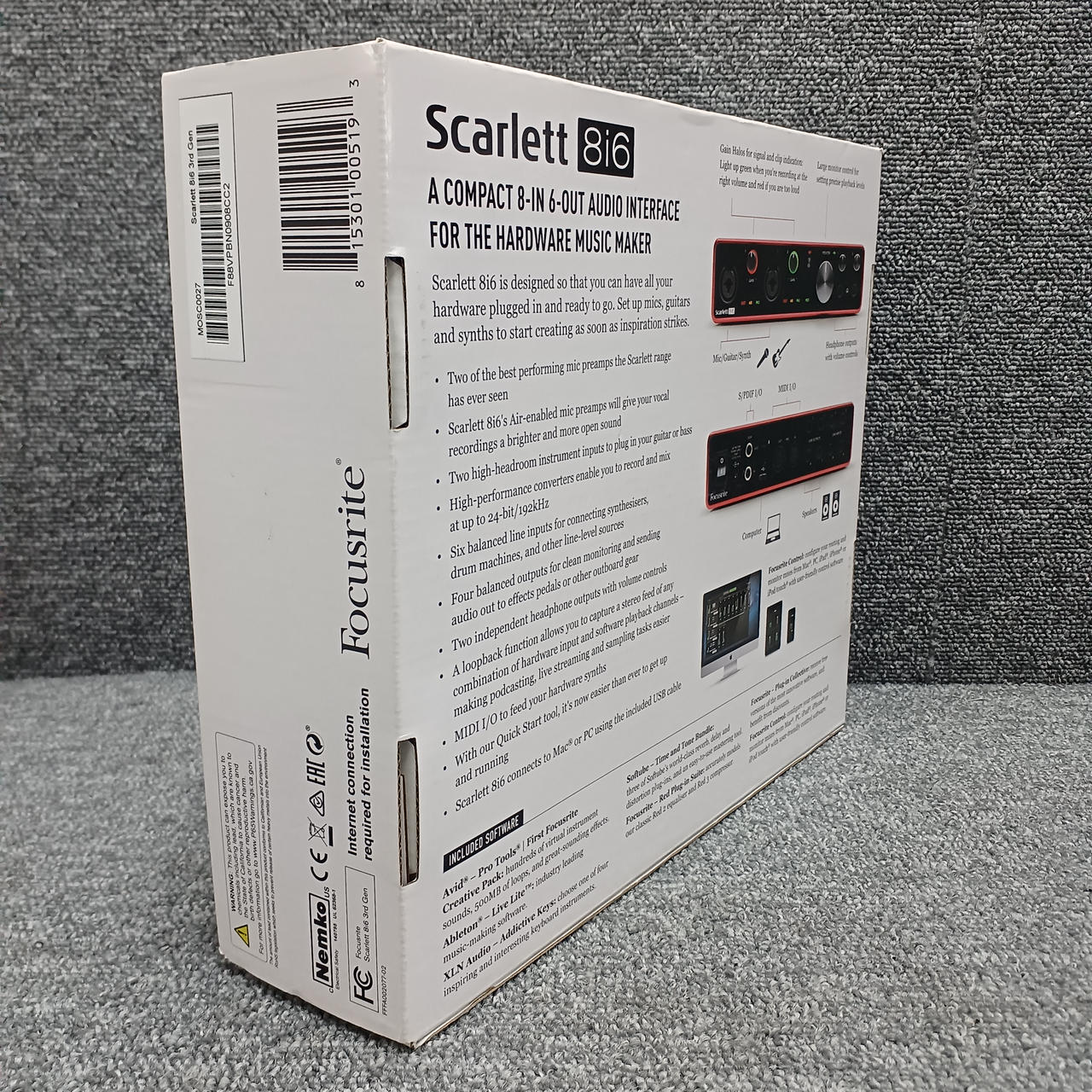 入出力:マイク入力:1、ライン/楽器入力:1、メインアウト(フォン):2 ※ステレオ1系統、ヘッドフォンアウト |