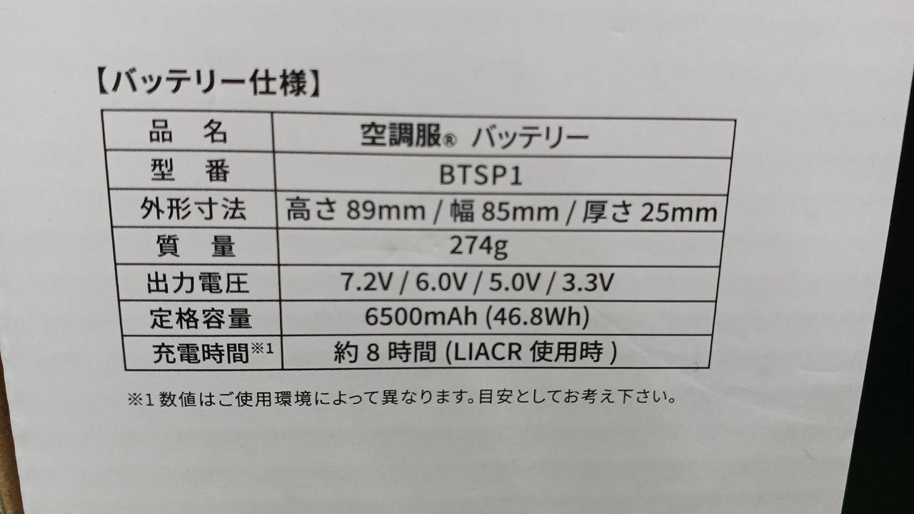 定格容量:6500mAh(46.8Wh) 入力:DC8.4V |