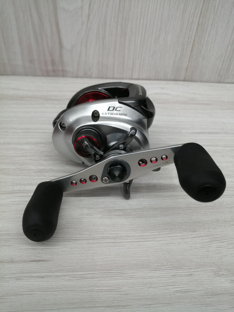 ギア比:6.3:1最大ドラグ力:4.5kg自重:約205g最大巻き上げ長:67cmハンドル長:42mmスプール径:34/25mmベアリング数6/1