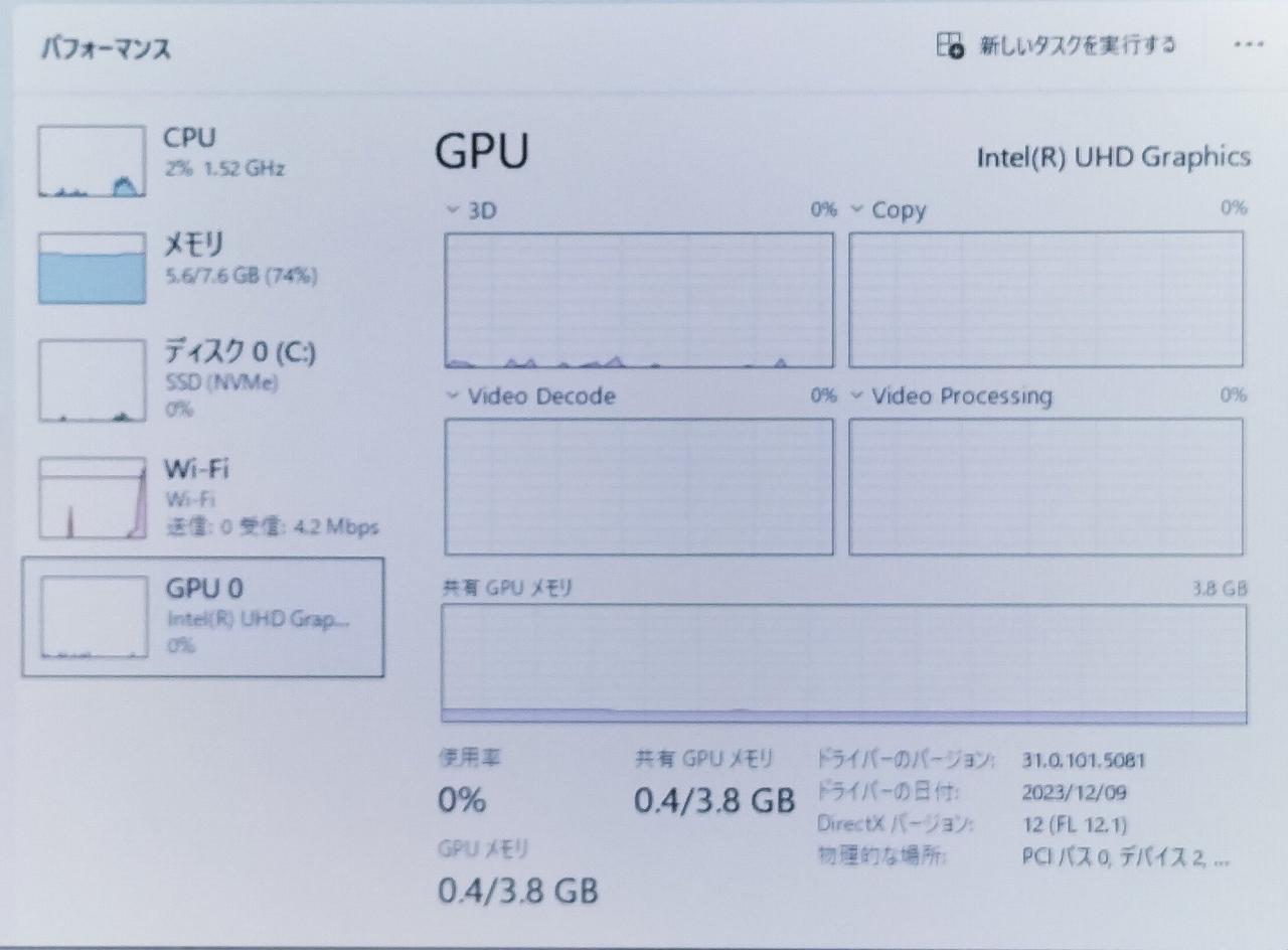 OS:Windows11 Pro、CPU:12th Gen Intel Corei5-1235U 2.50GHz |