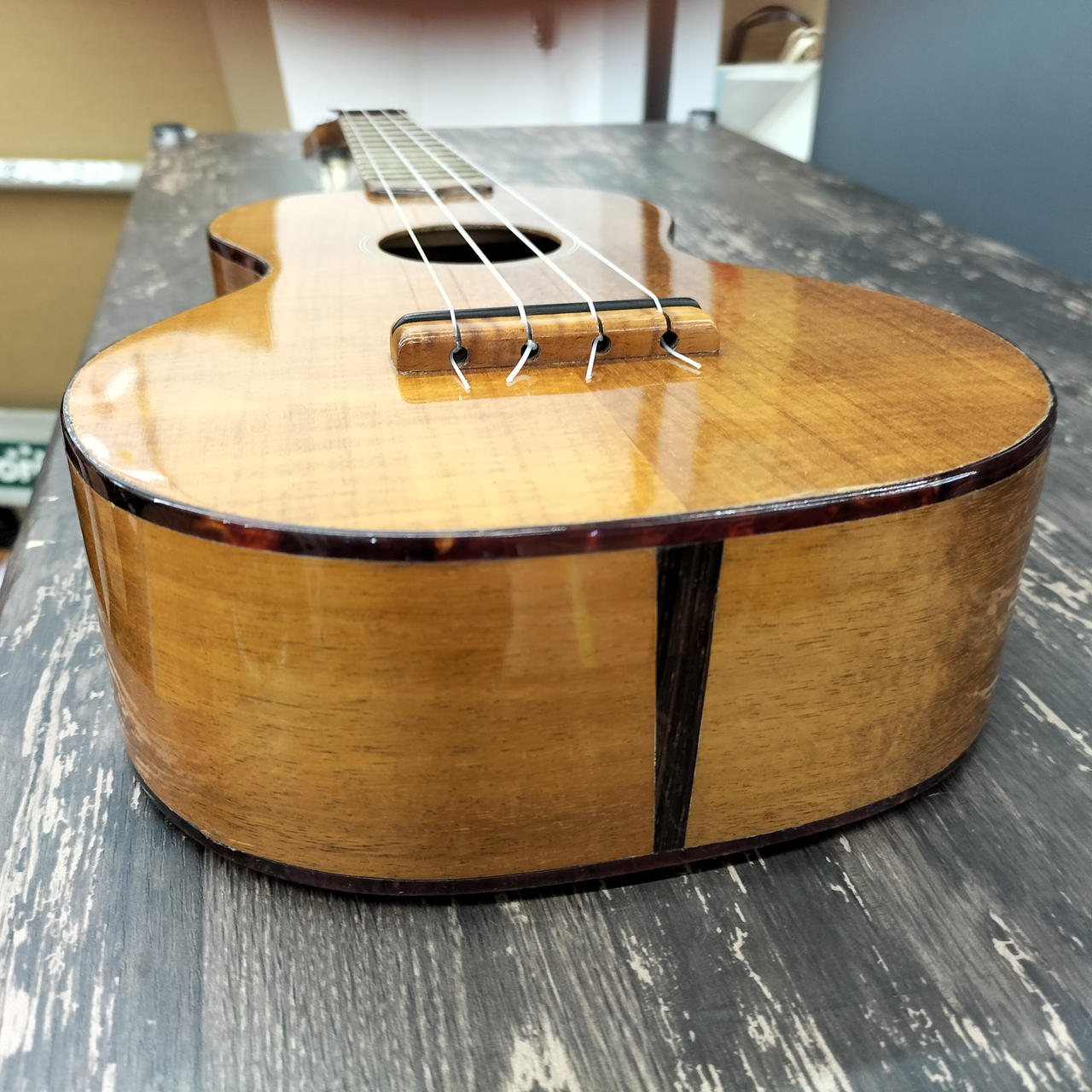 コンサートウクレレ。アメリカコロラド州のギター工房製作の1本。 |