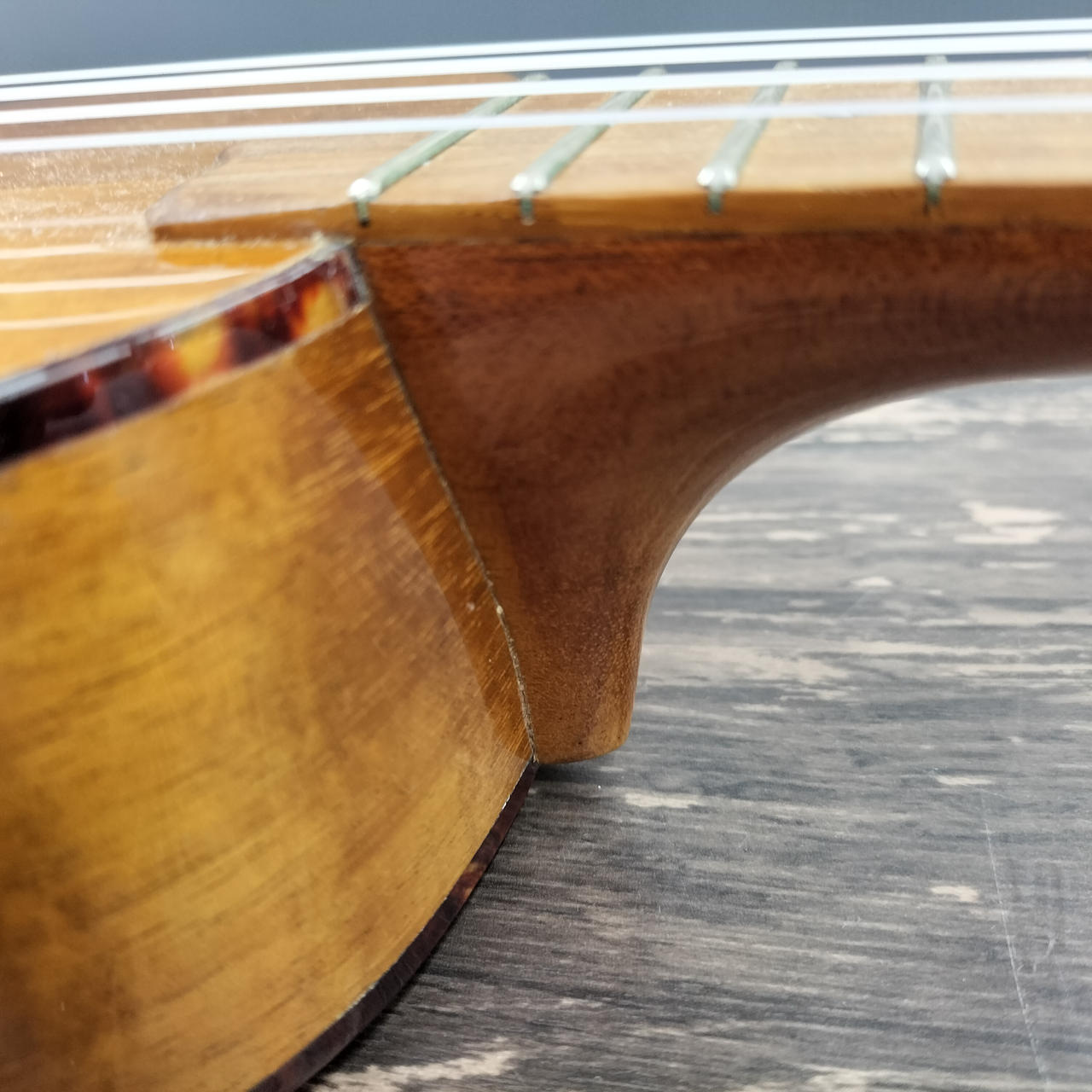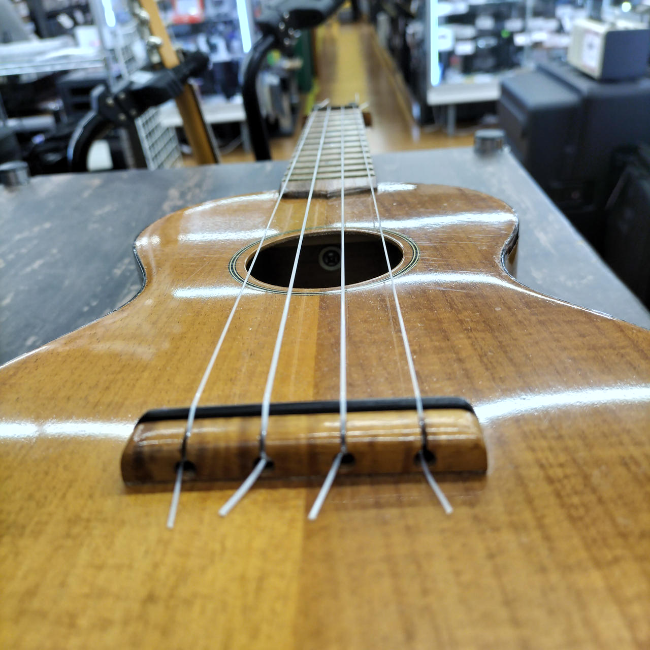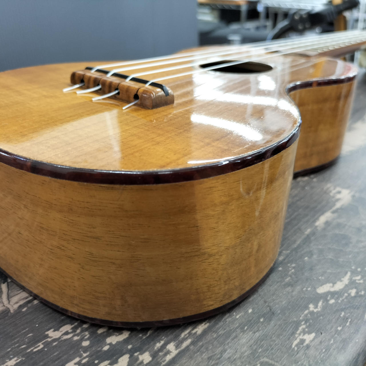 しっかりした作りのレアモデルです。弦はAQUILAをセット済。バインディングに一部剥がれあり。 |