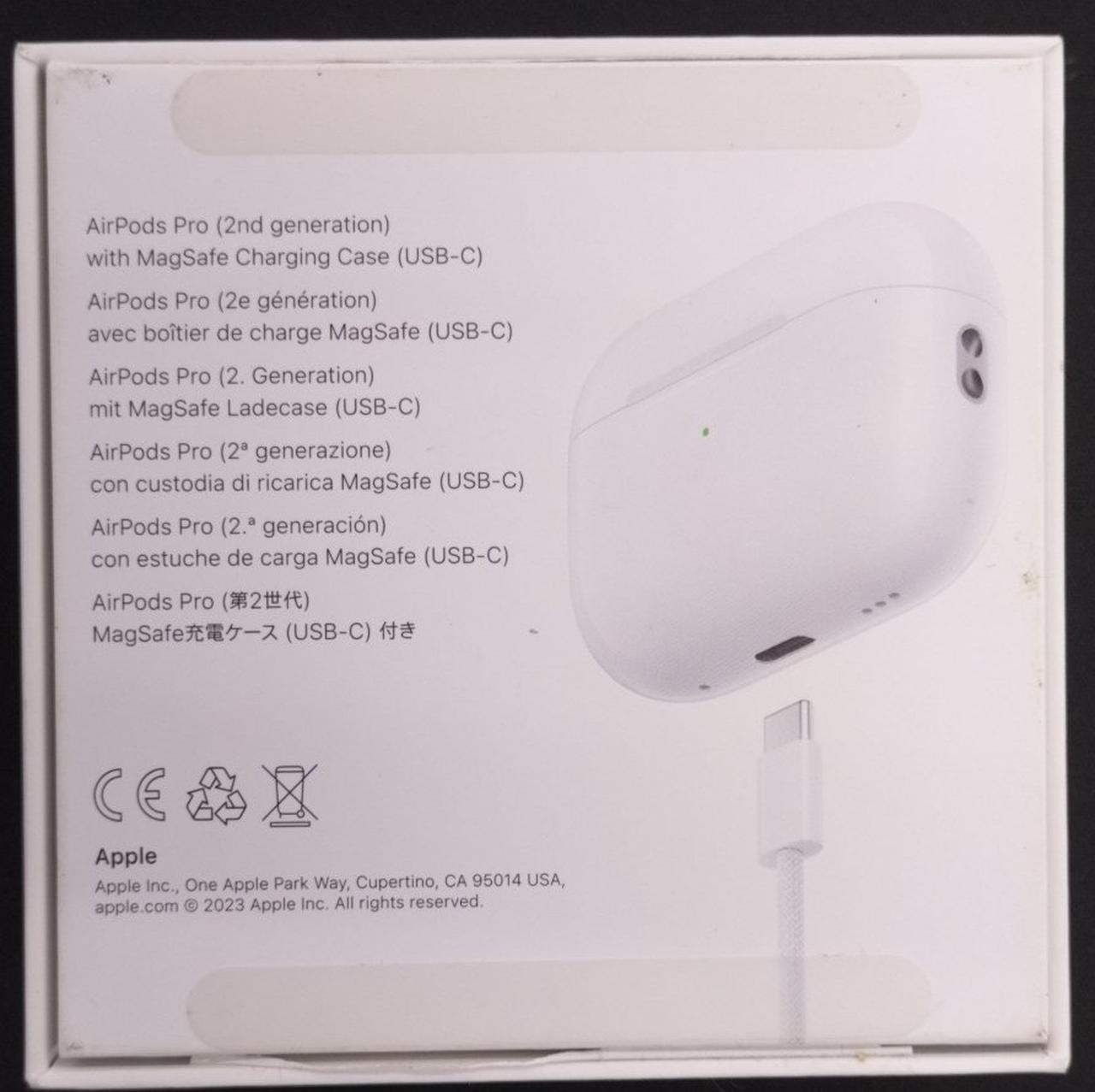 MagSafe充電(USB-C)に対応した第2世代の「AirPods Pro」。前世代のモデルと比べて最大2倍のアクティブノイズキャンセリング機能を搭載。 |