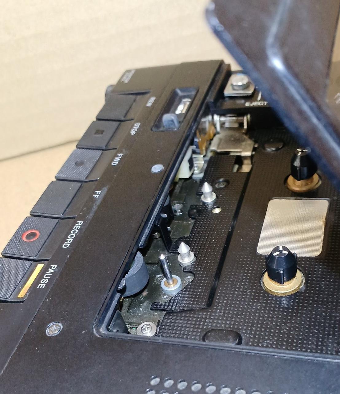またカセットの蓋がかなり緩く、本体を傾けるだけで勝手に蓋が空いてしまいます/またカセットの蓋、しっかり閉まりません |