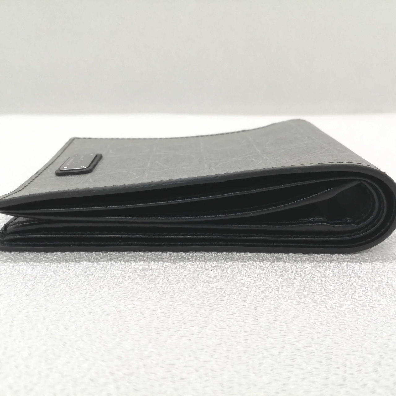 グレーのオシャレな二つ折り財布です!