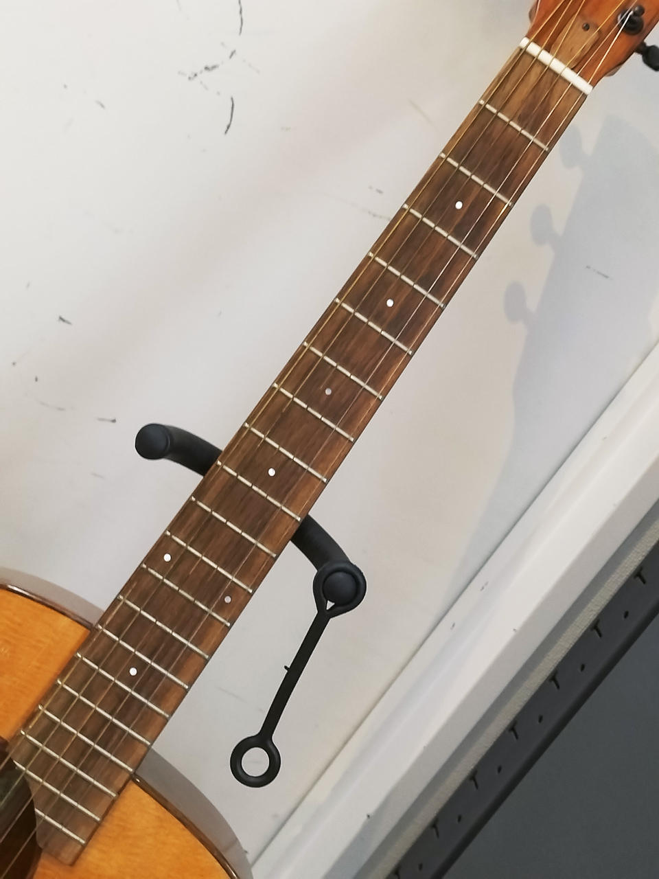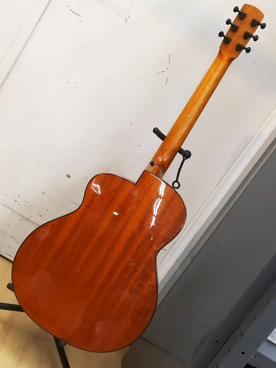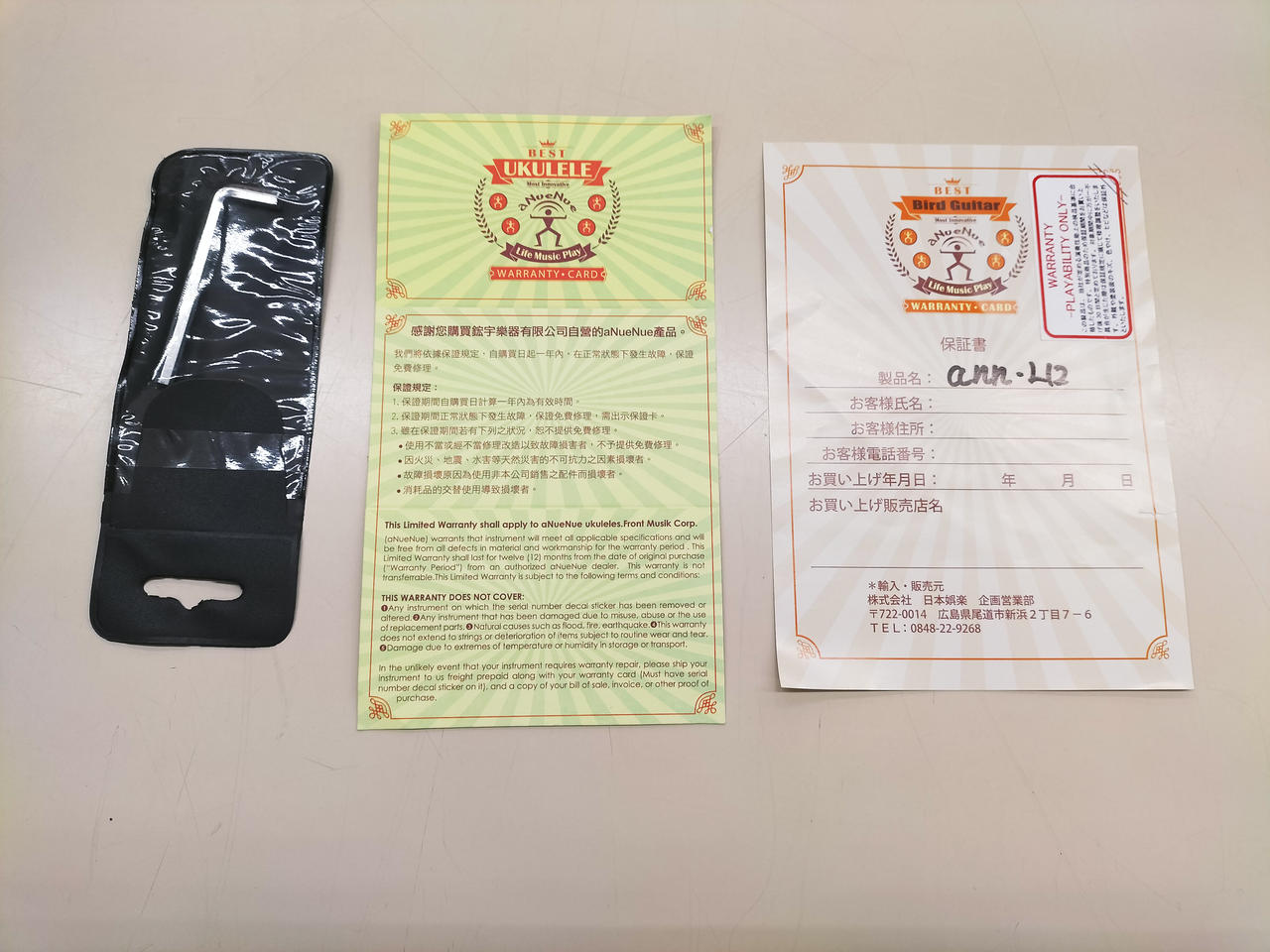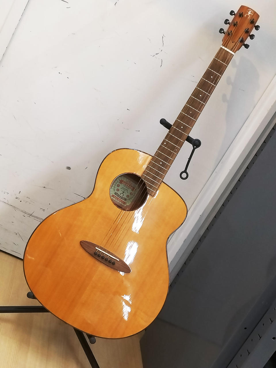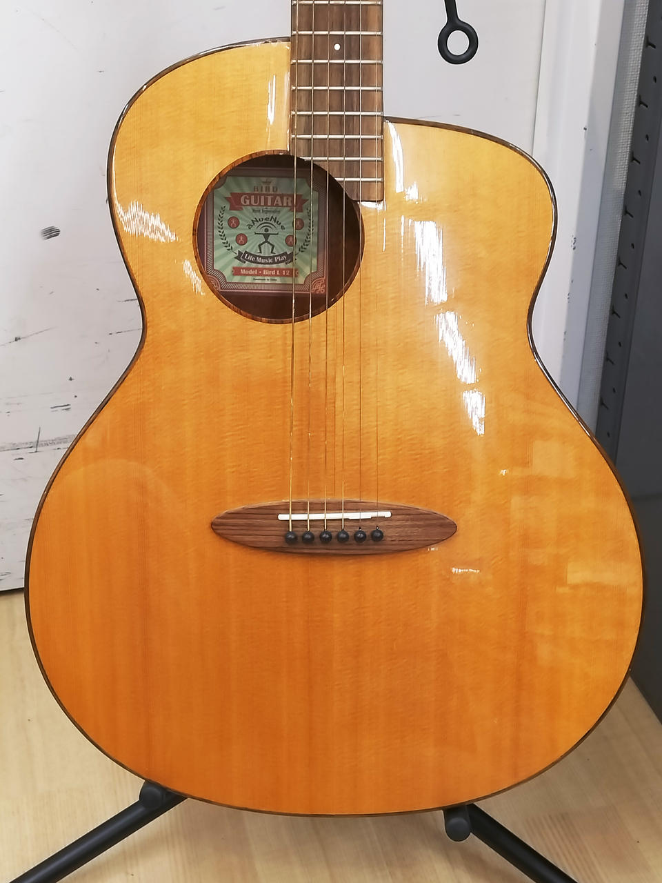 斬新的なデザインのミニギターシリーズ「BIRD GUITAR」の、フルサイズ・モデル。トーンホール付近にヒビを塞いだ修理痕があります。純正ギグケース付属。 |