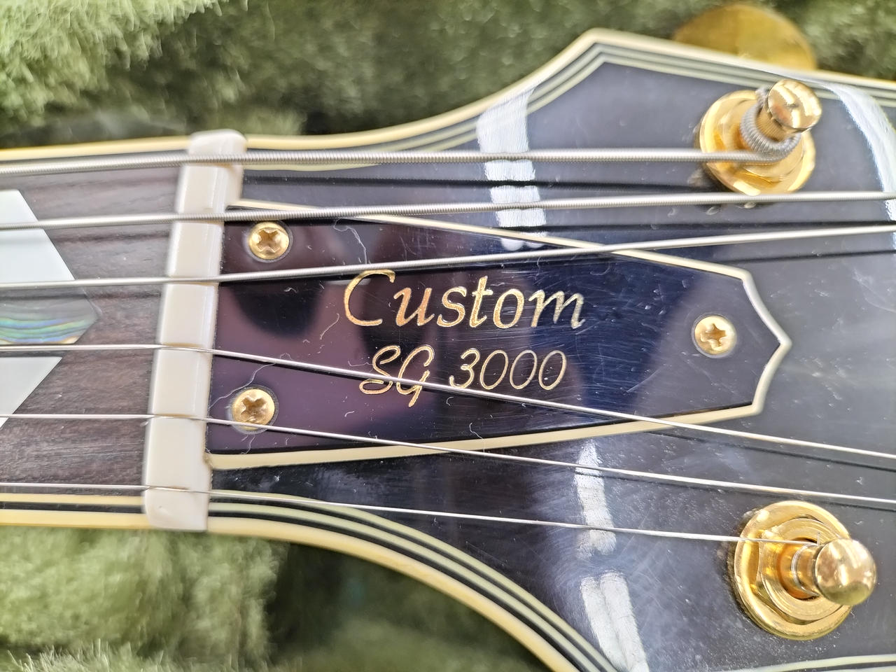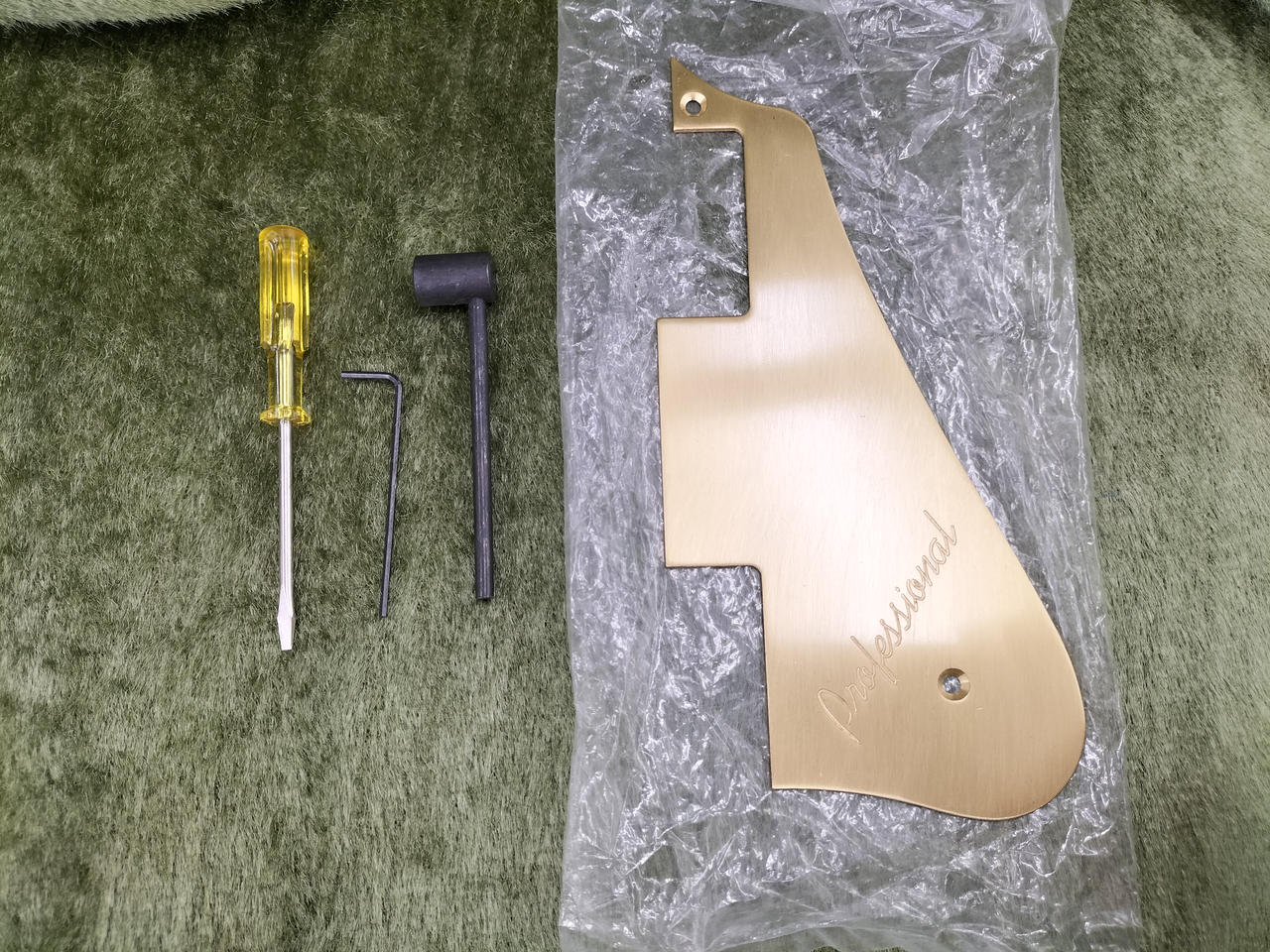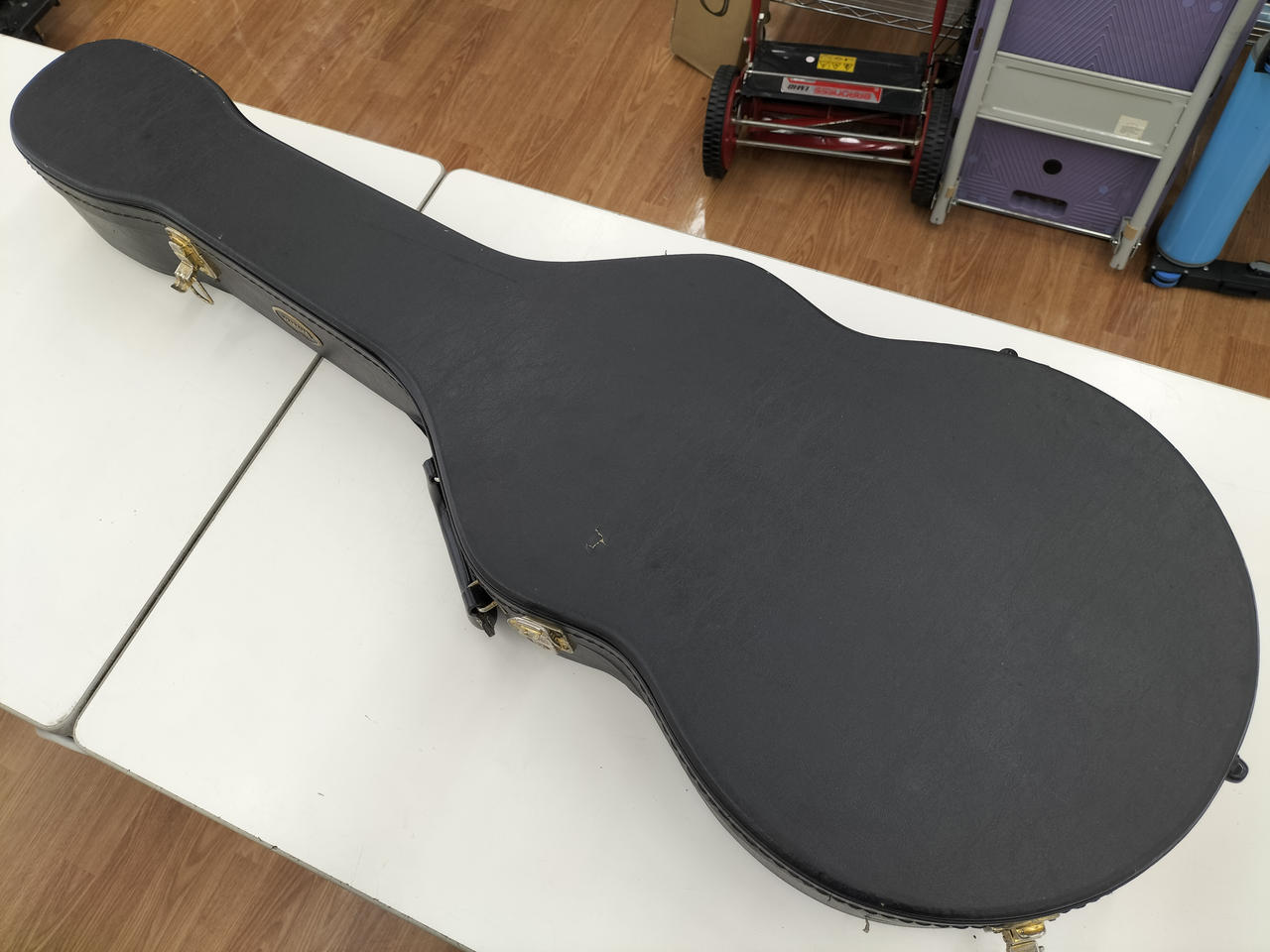 ハードケース付属、中にゴールドピックガードが入ってます。 |