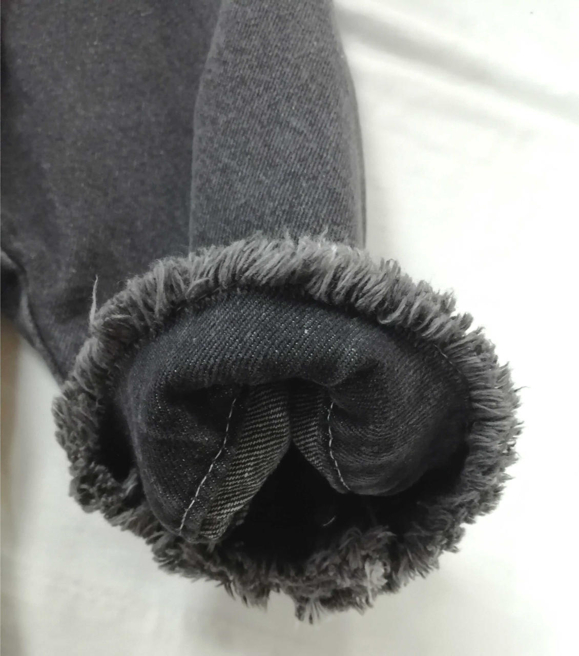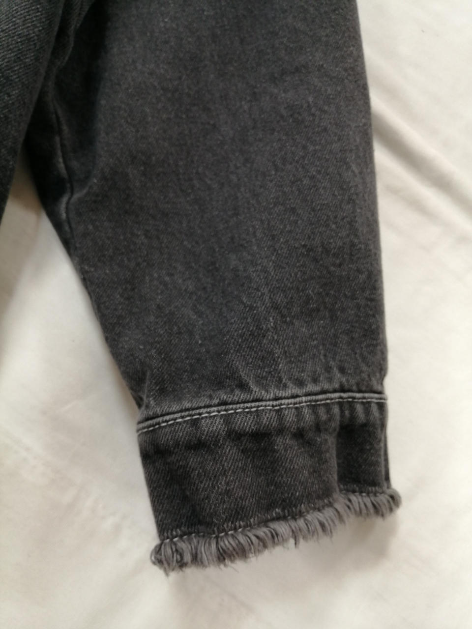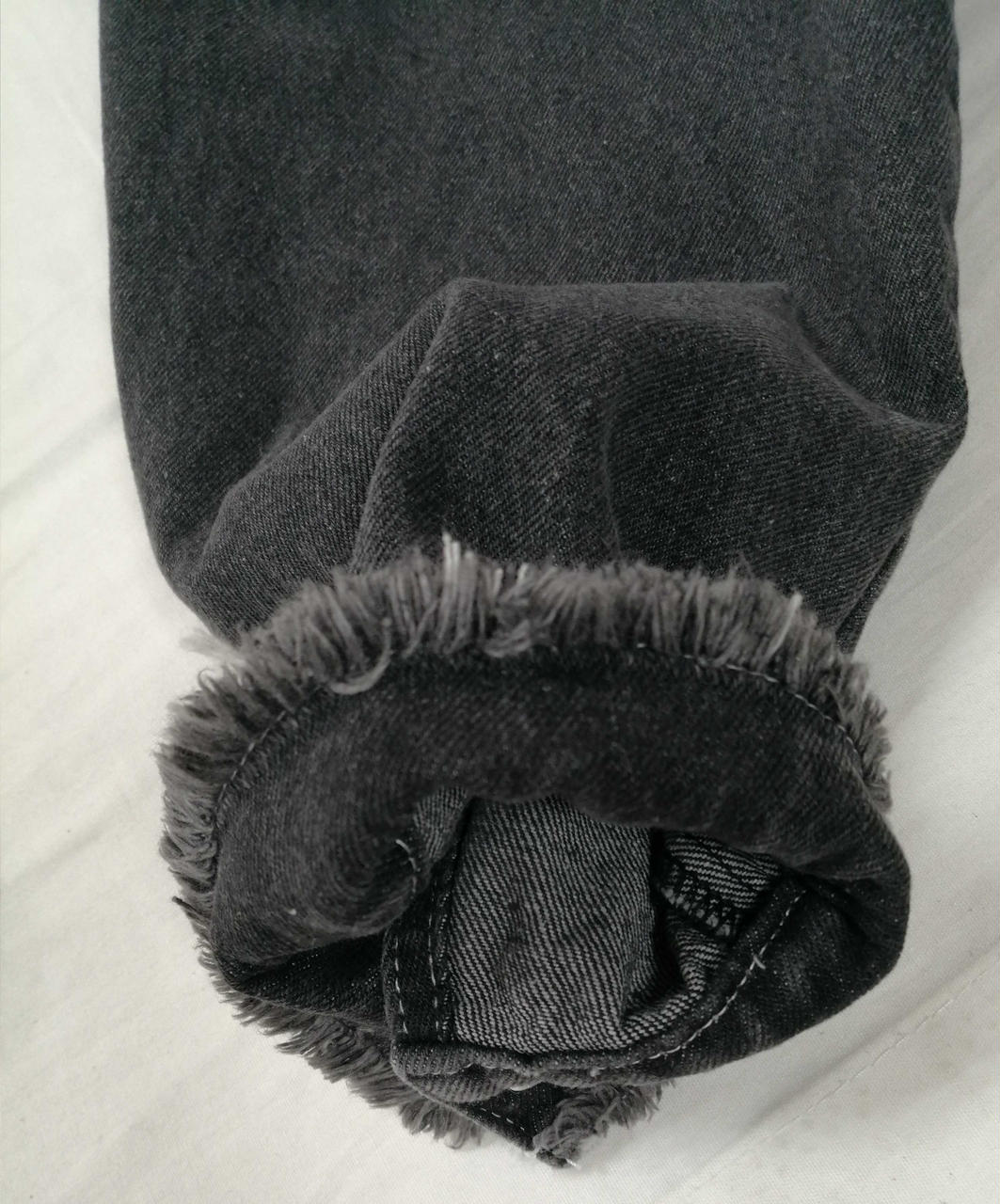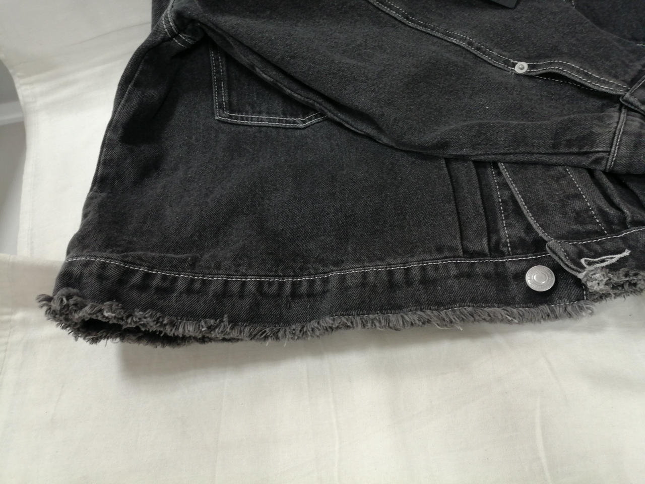 裾に程良いデニムの加工感とマッチしたフリンジ加工が施されアクセントになっております! |