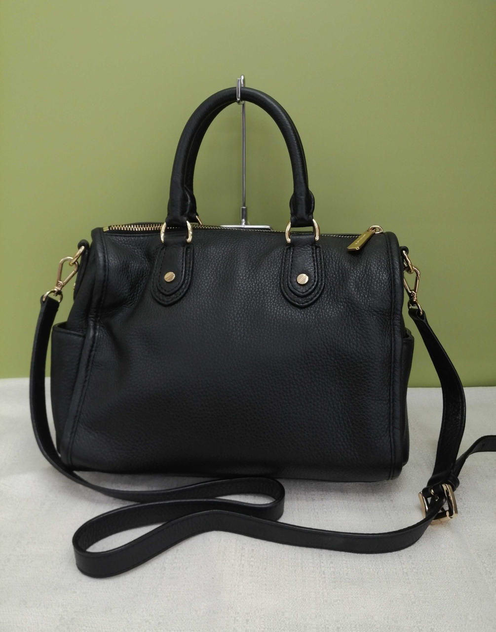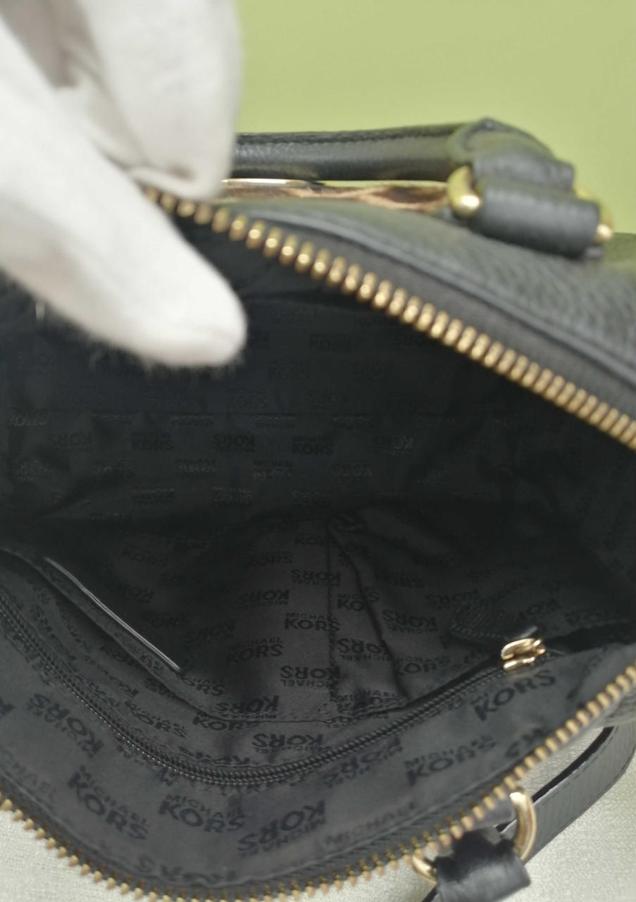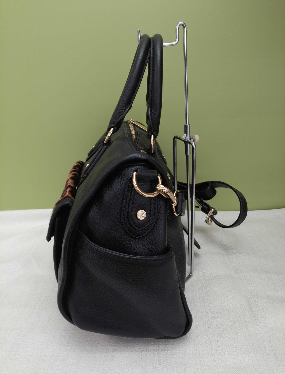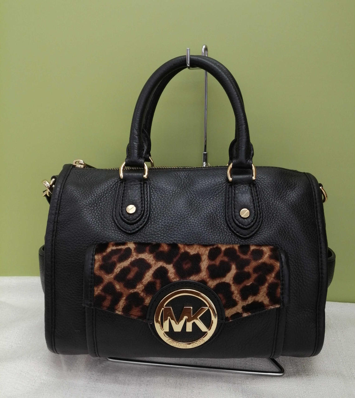 柔らかく上質な生地のショルダーバッグです。前面部分のヒョウ柄がアクセントです。