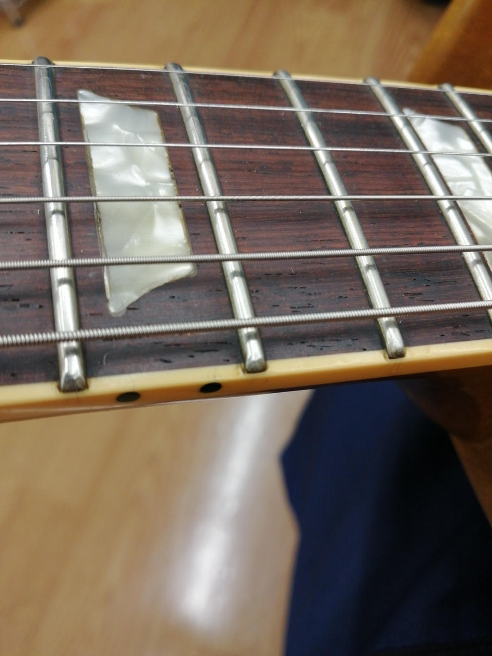 また、残念ながらリフレット時にフレットエッジバインディングが失われていますが、バインディングに痕跡が見受けられます! |