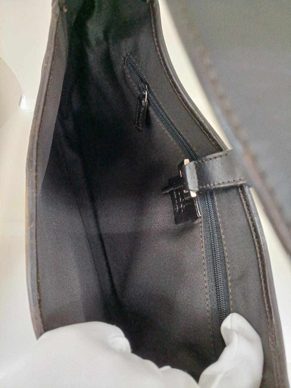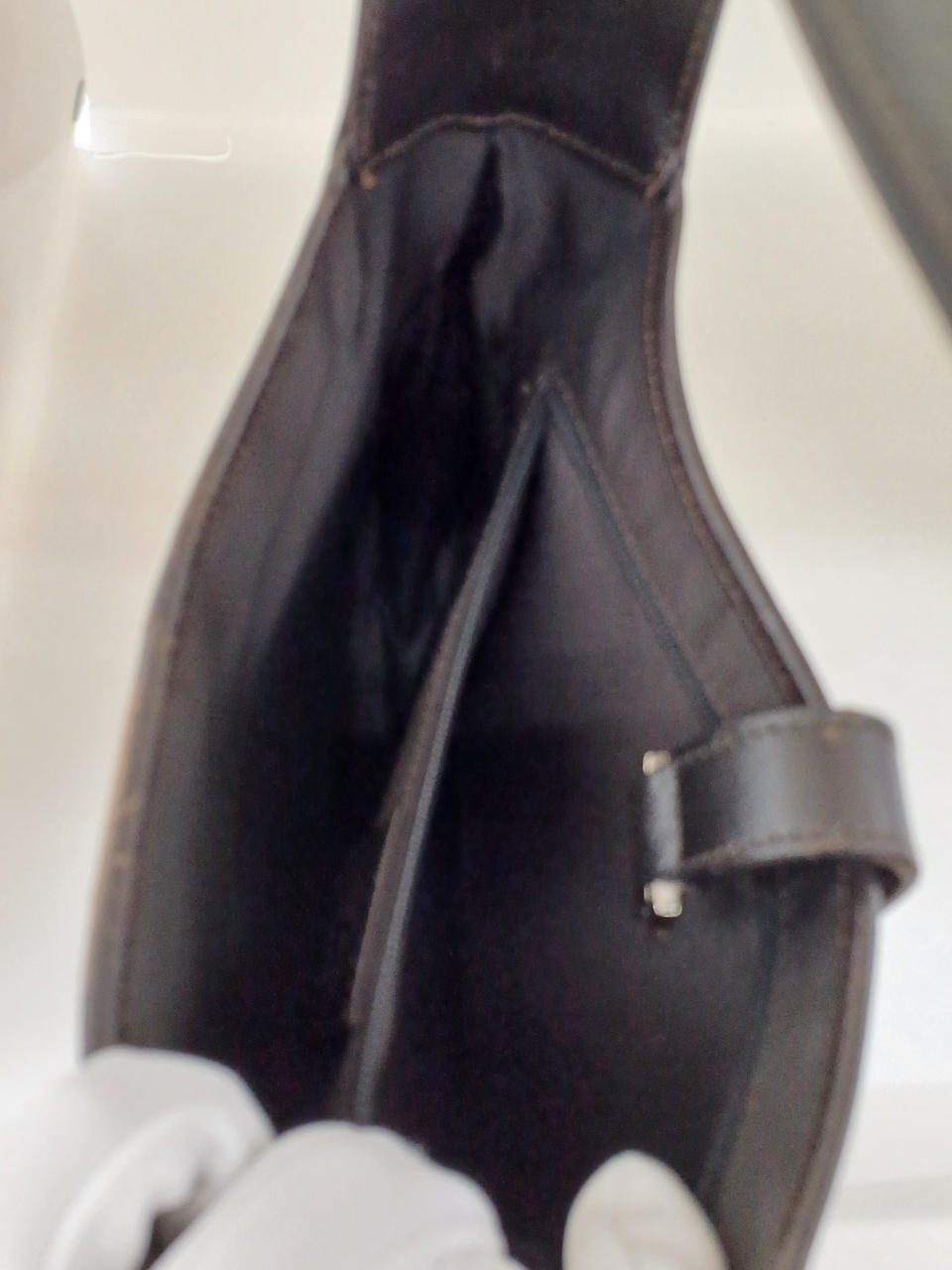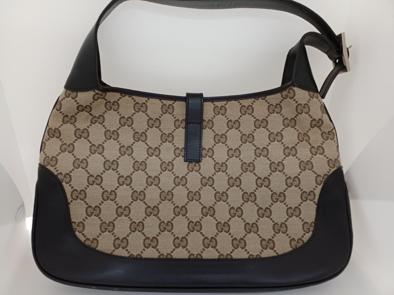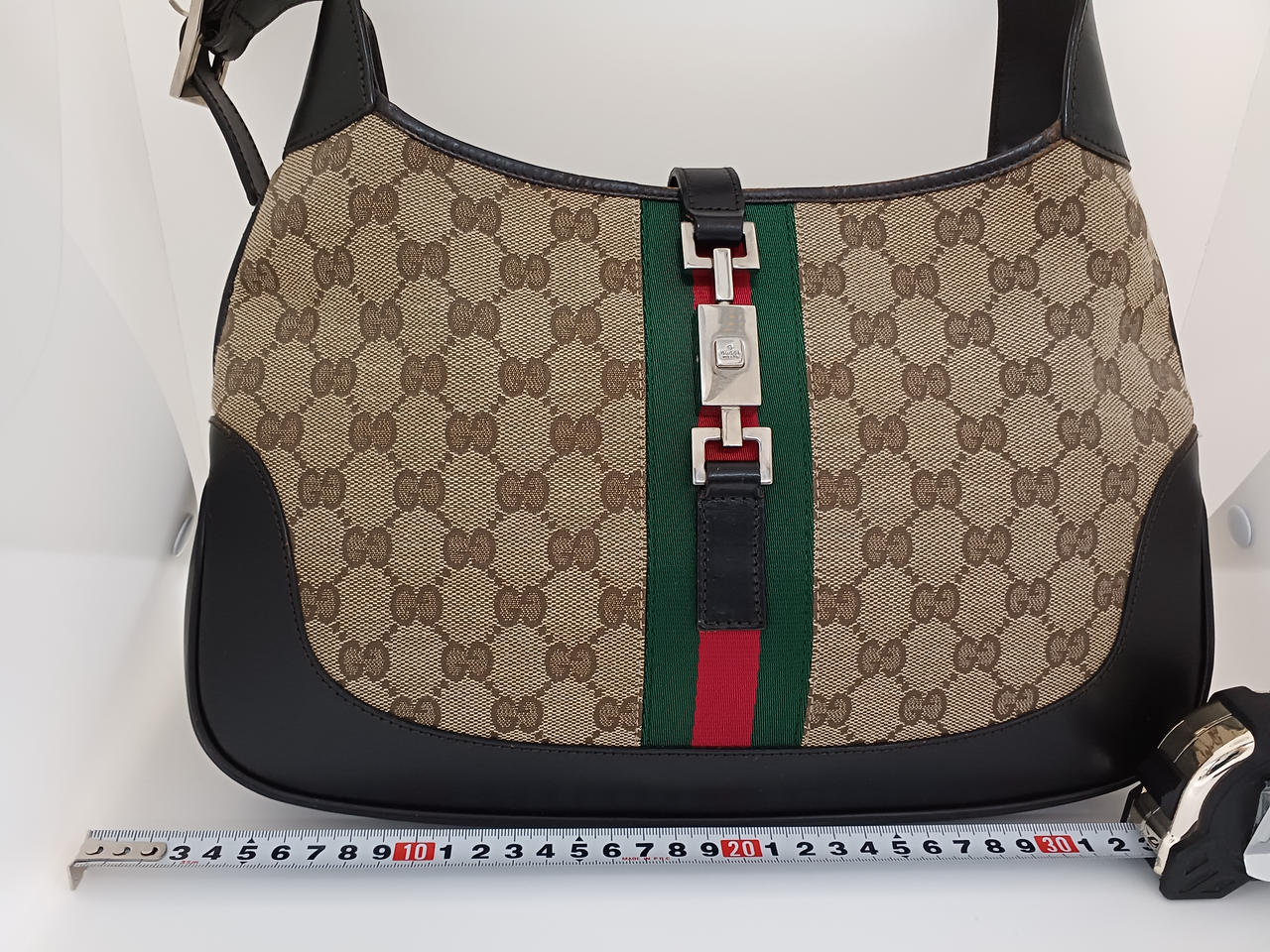 ガラスケースにて販売しております。持ち手や留め具部分に汚れがありますが、欠損はなくまだまだ安心してご利用いただけるお品物になります。