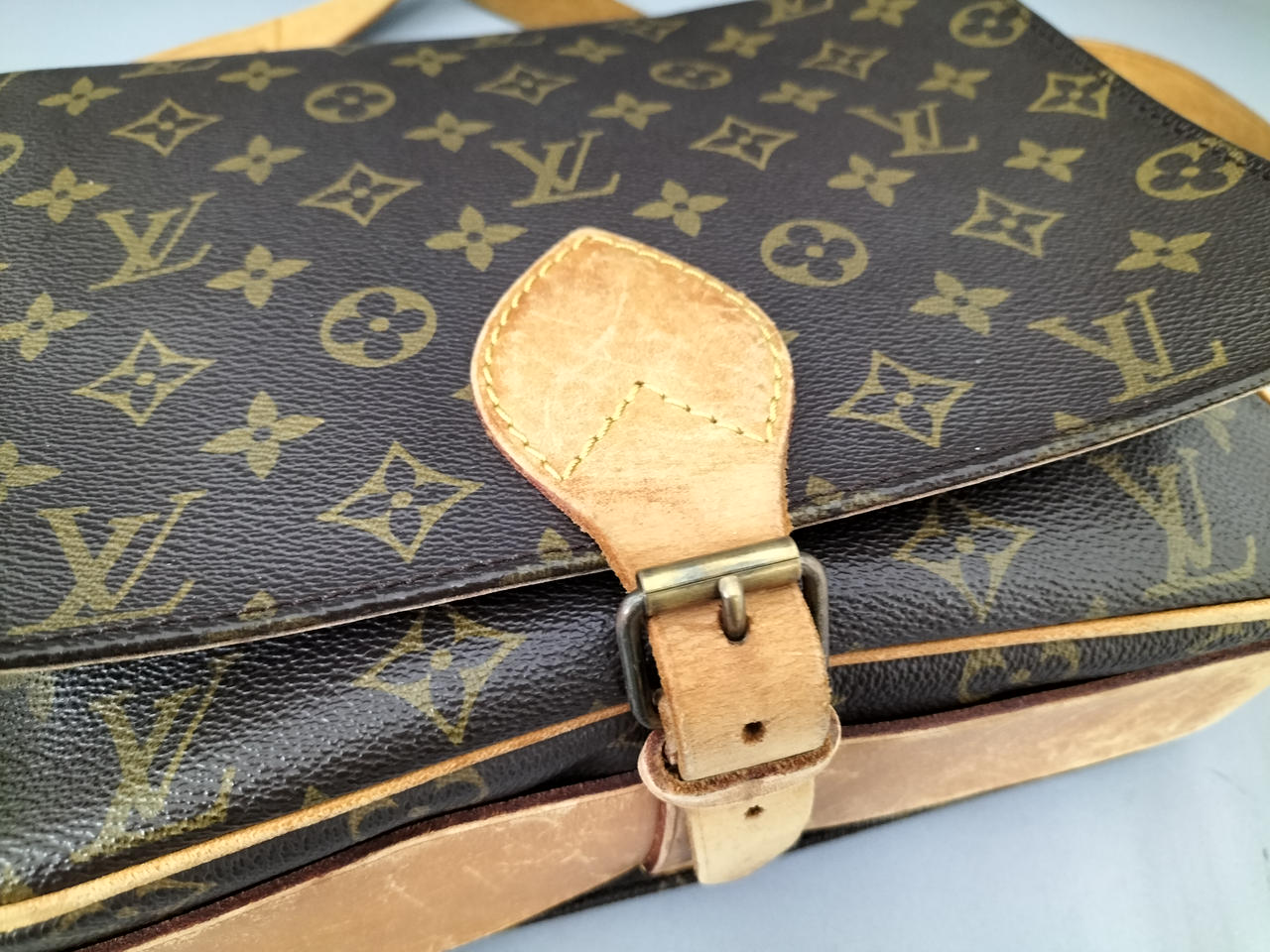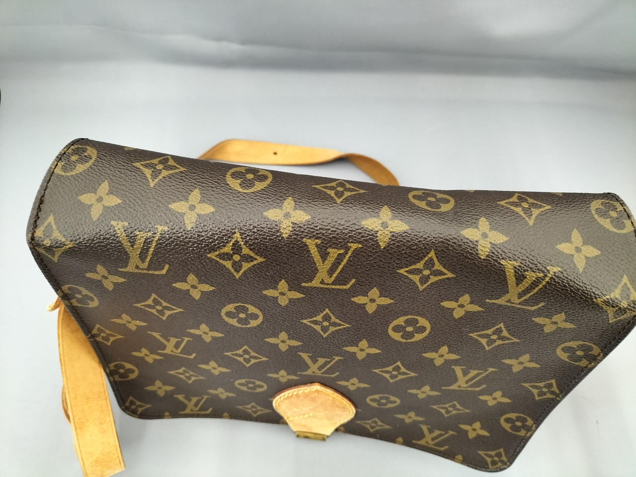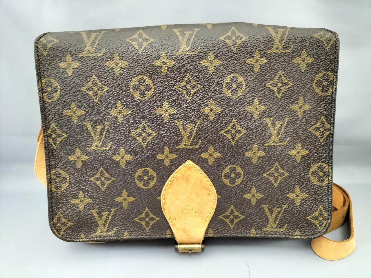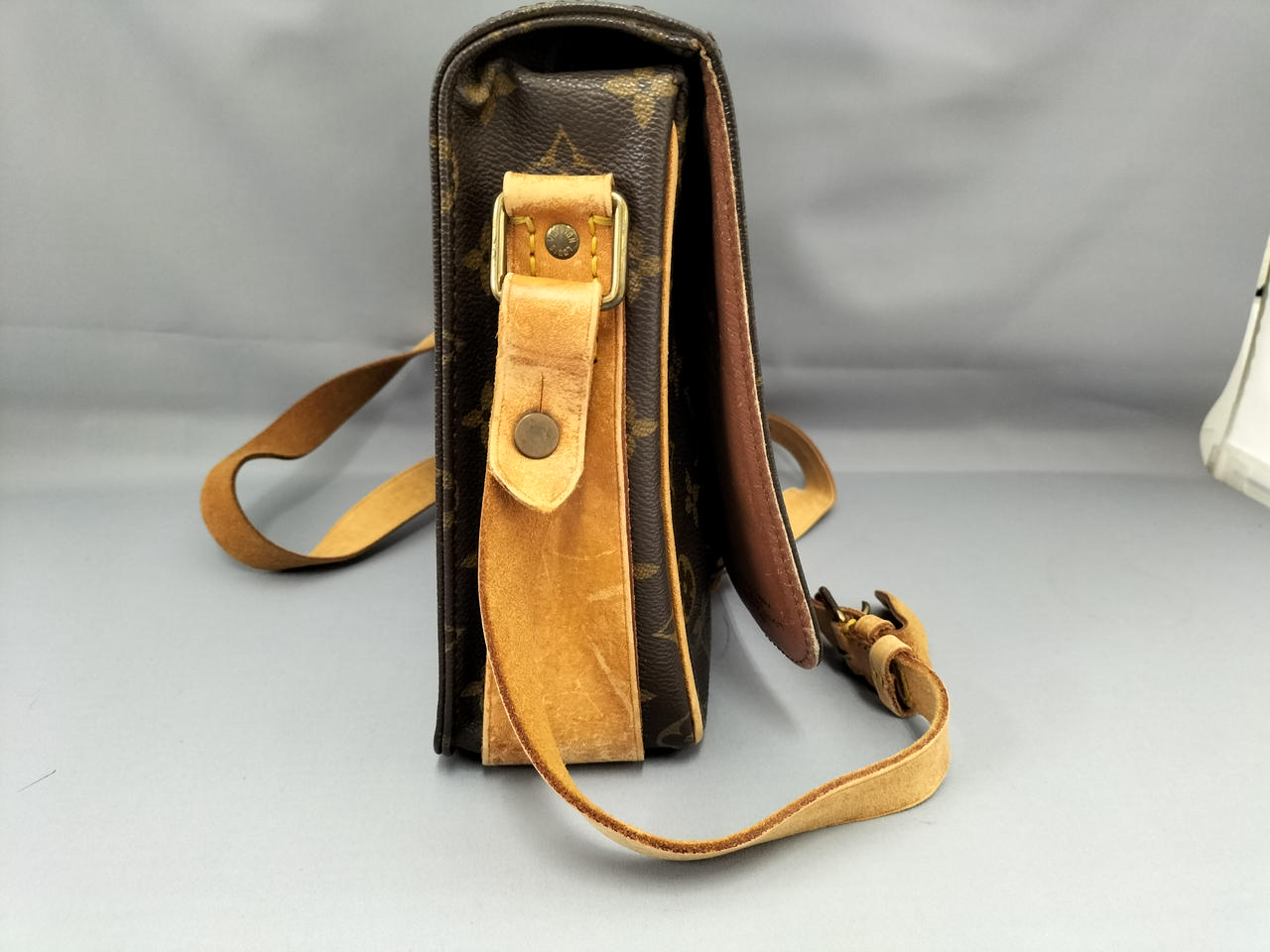 傷やシミ、擦れ等全体的にダメージがあります。ショルダー割れて裂けてきている部分も見受けられます。また、型崩れもしています。 |