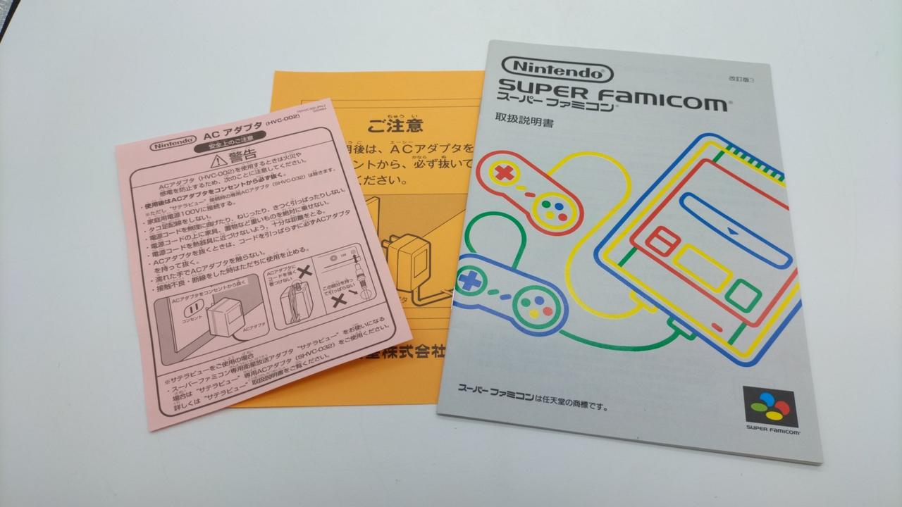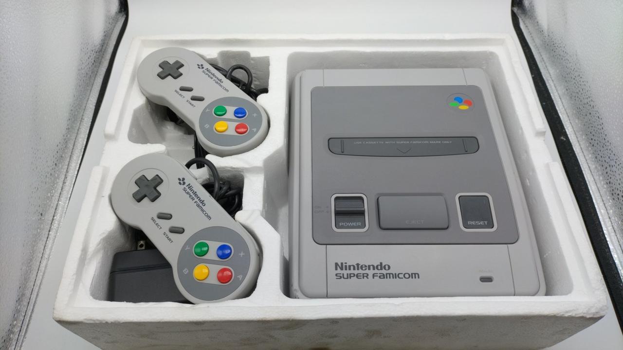 任天堂のスーパーファミコンの名作ゲームがプレイできます!化粧箱、取扱説明書あります!コントローラー×2、ACアダプターAVケーブル付属。※箱傷みあり、本体キズあります。 |
