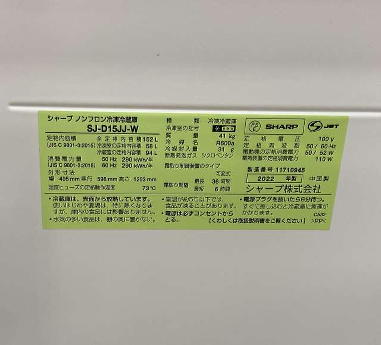 タイプ:冷凍冷蔵庫 ドアの開き方:右開き/左開き(付け替え) 定格内容積:152 L |
