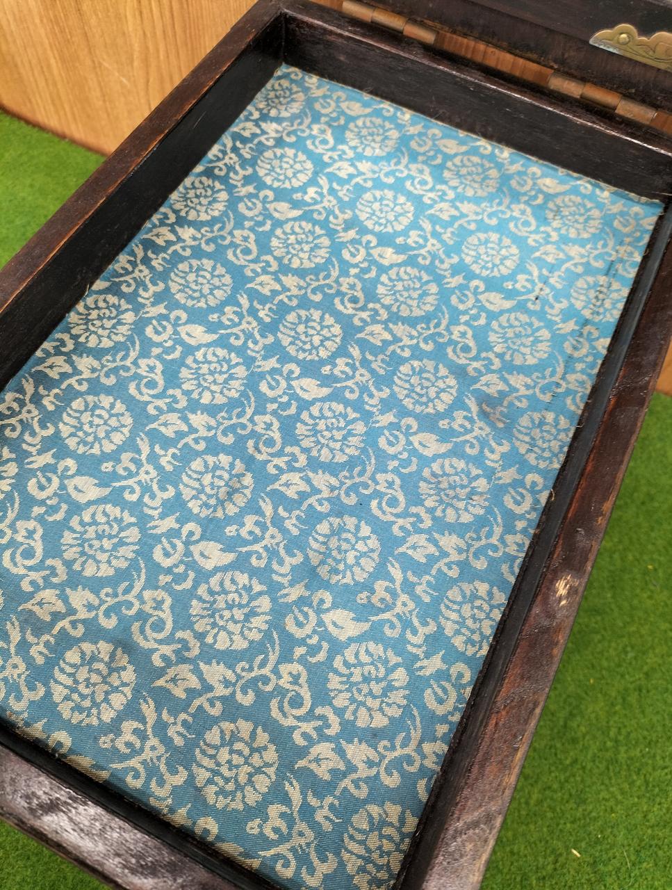 丸い飾りを手前に引くとロックが外れて鏡が出せます |