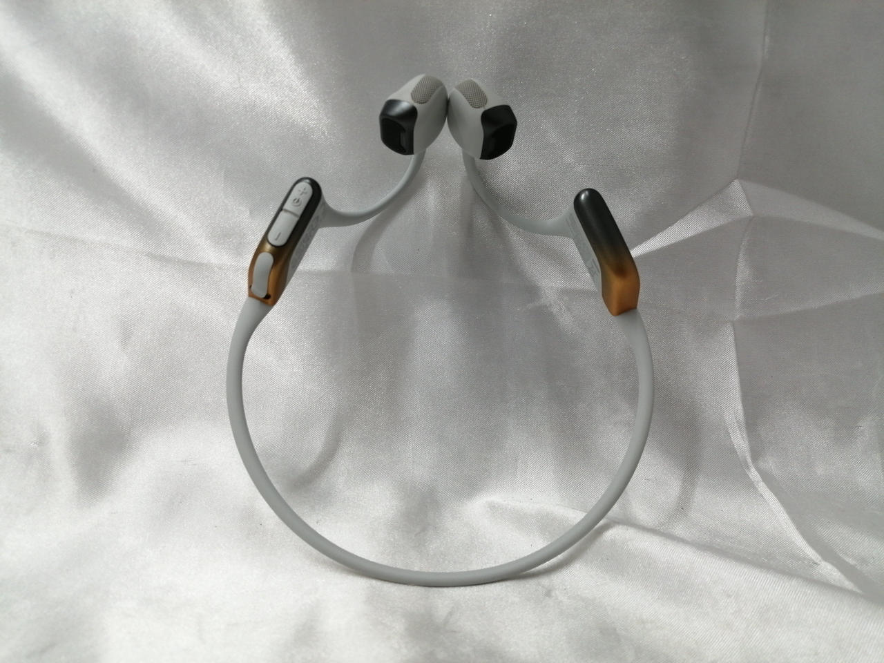 低音を響かせる空気伝導ドライバーのデュアル・ドライバーを採用したワイヤレス骨伝導イヤホン |