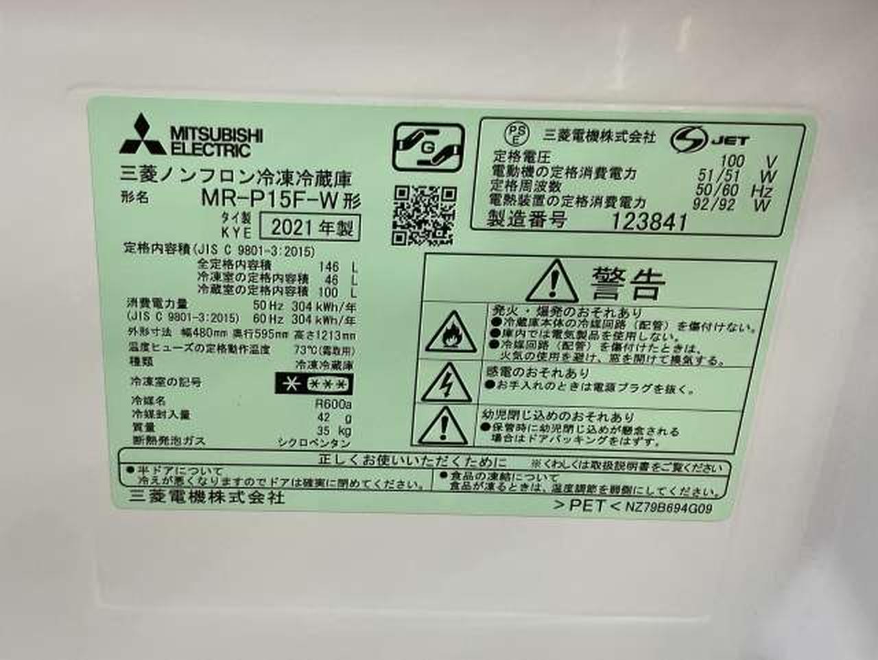 タイプ : 冷凍冷蔵庫 定格内容積:146L ドア数:2ドア 幅:480mm