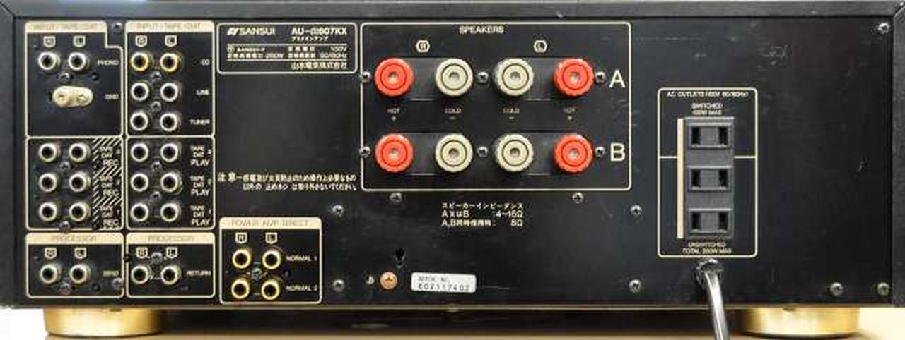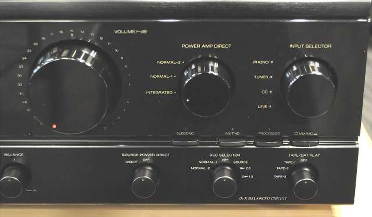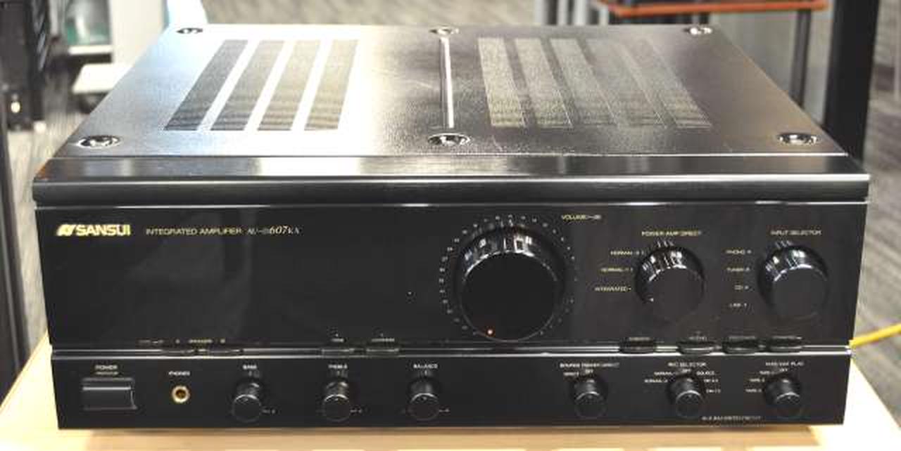 アドバンスドα-Xバランス回路を採用した607シリーズのプリメインアンプ 導入されている技術は上級機とほぼ同じで入力から出力まで全段をワイドレンジDCアンプ構成とし、裸特性における周波数特性の拡大や位相特性の向上、歪率の低減化を行い、NFBを最小限に抑えています PHONOはMM/MC両対応で、サンスイらしい中低域はもちろん デジタル時代を意識した高域再生も特徴です |