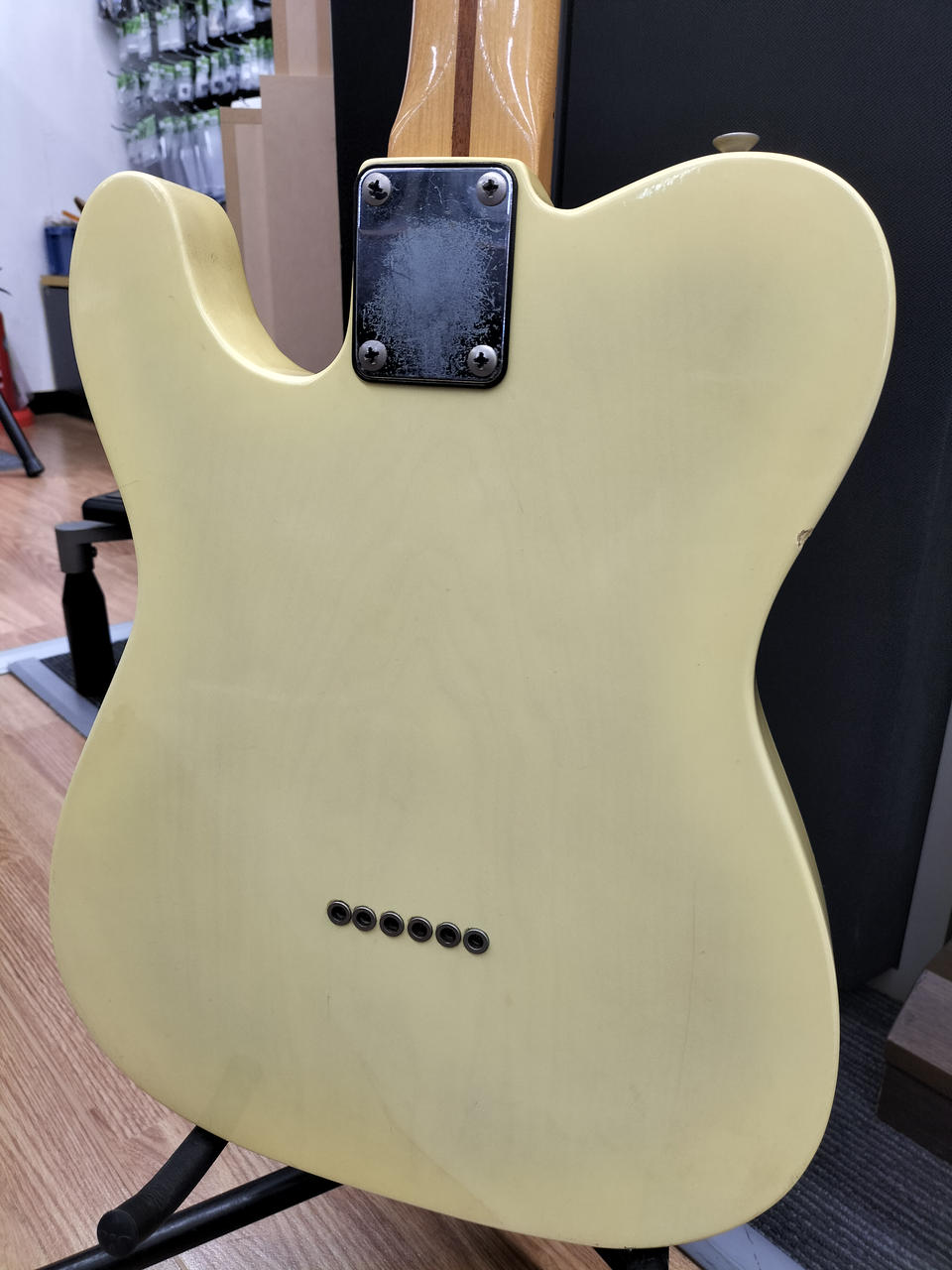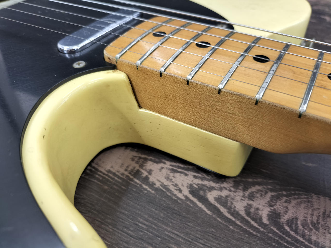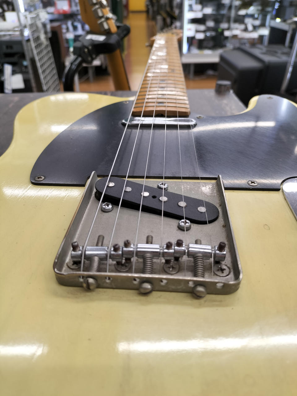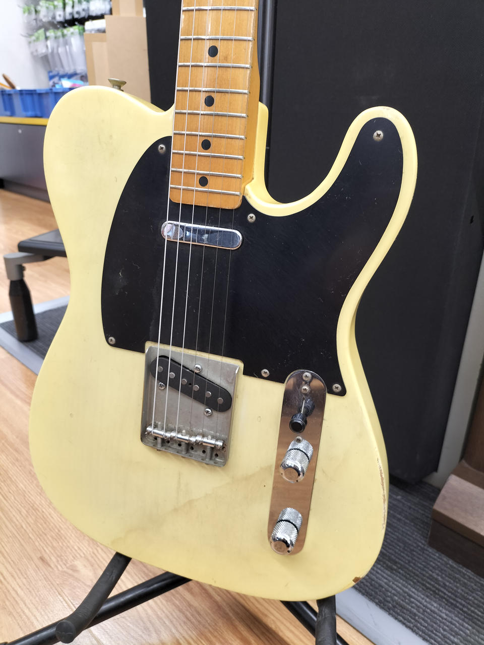 日焼けした味のあるボディ、メイプル指板、ブラックピックガードの王道TLスタイル |