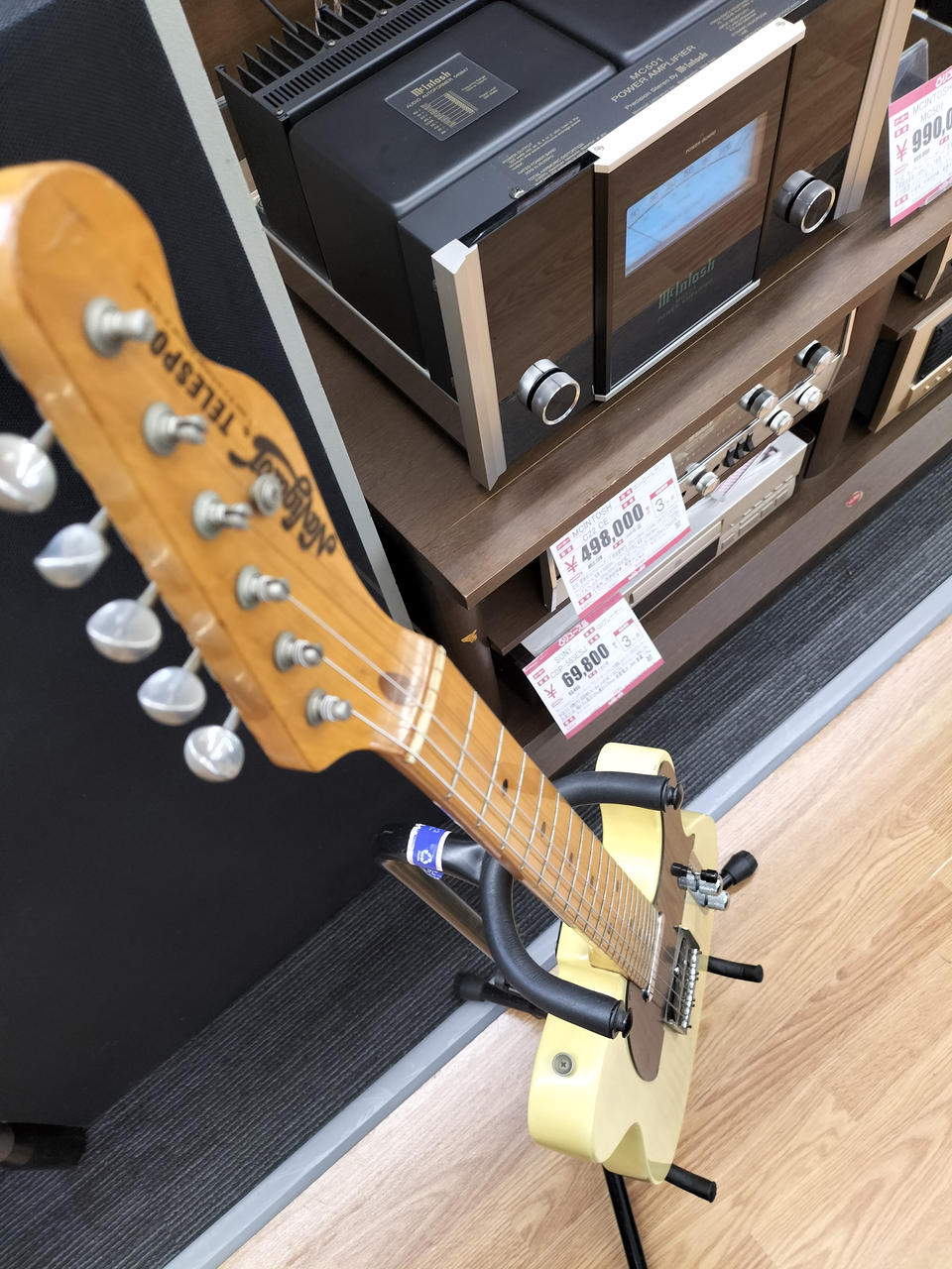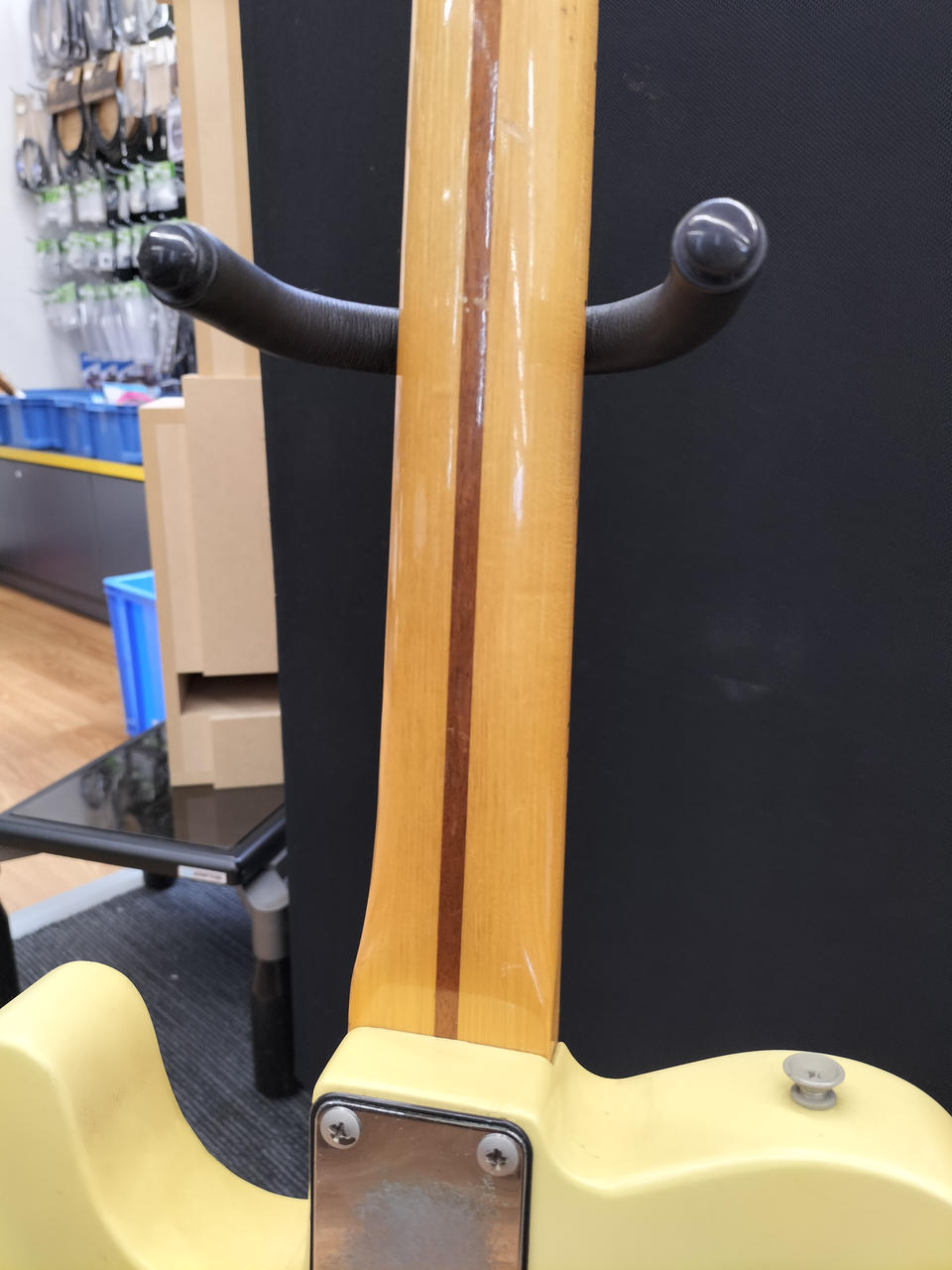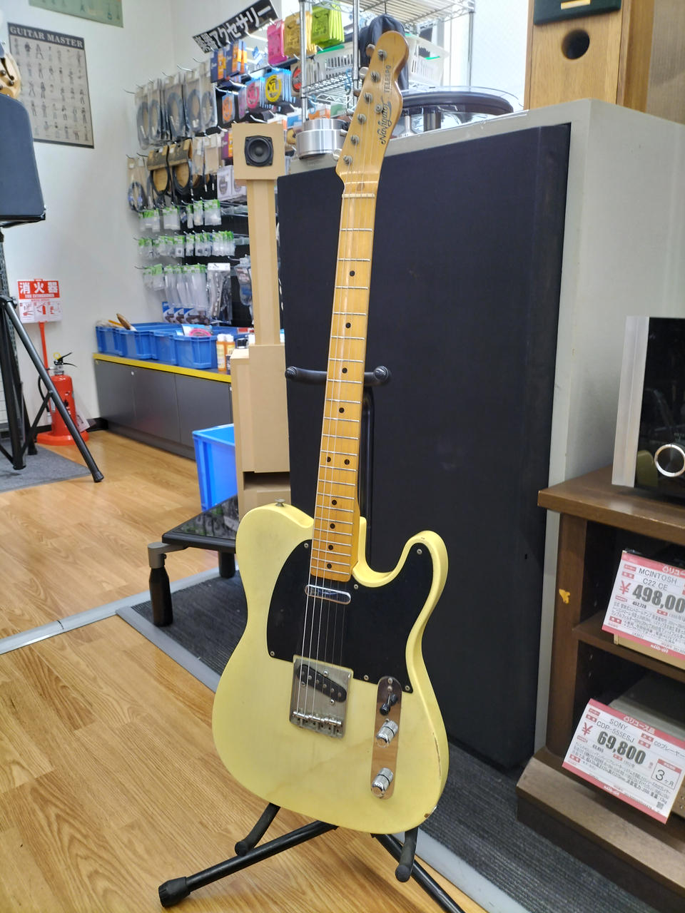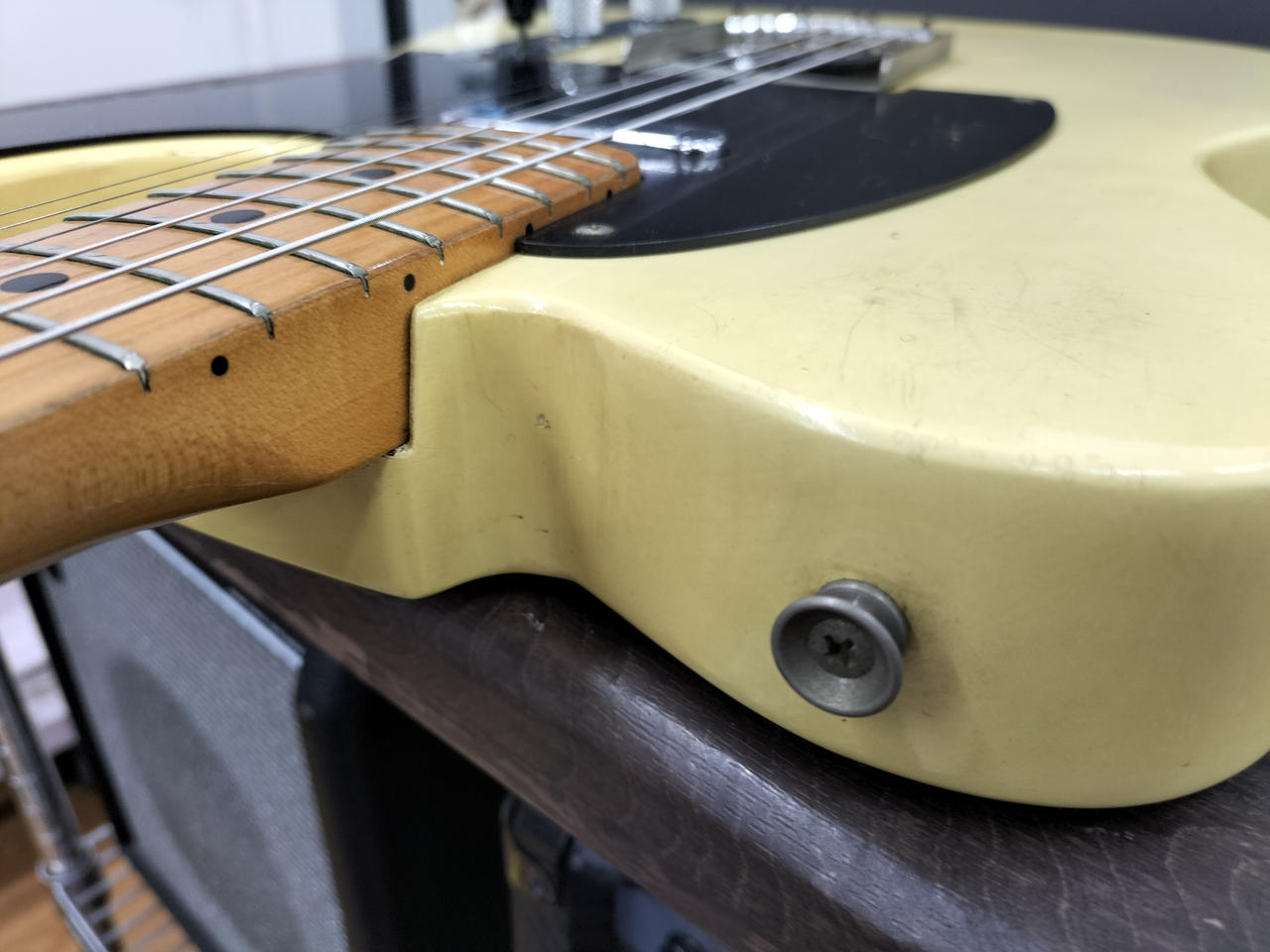 日焼けした味のあるボディ、メイプル指板、ブラックピックガードの王道TLスタイル |
