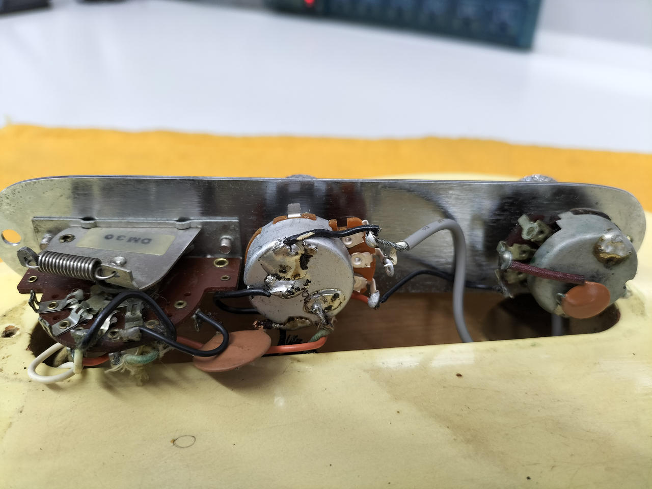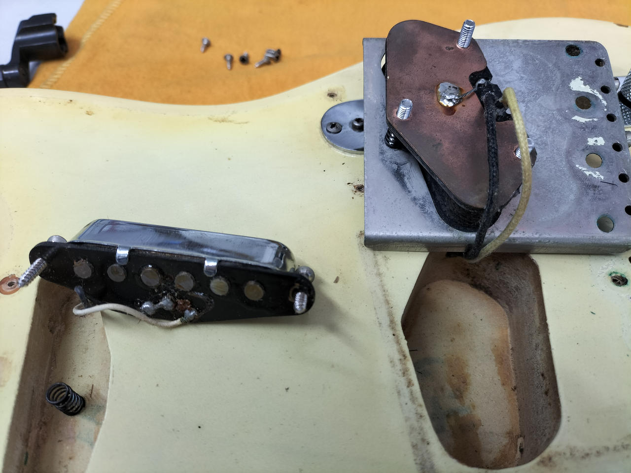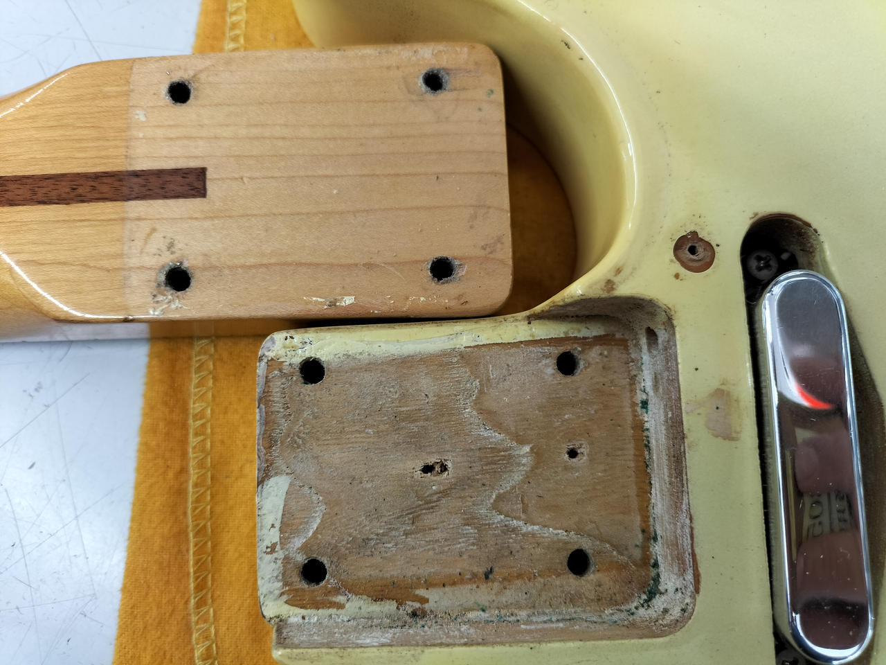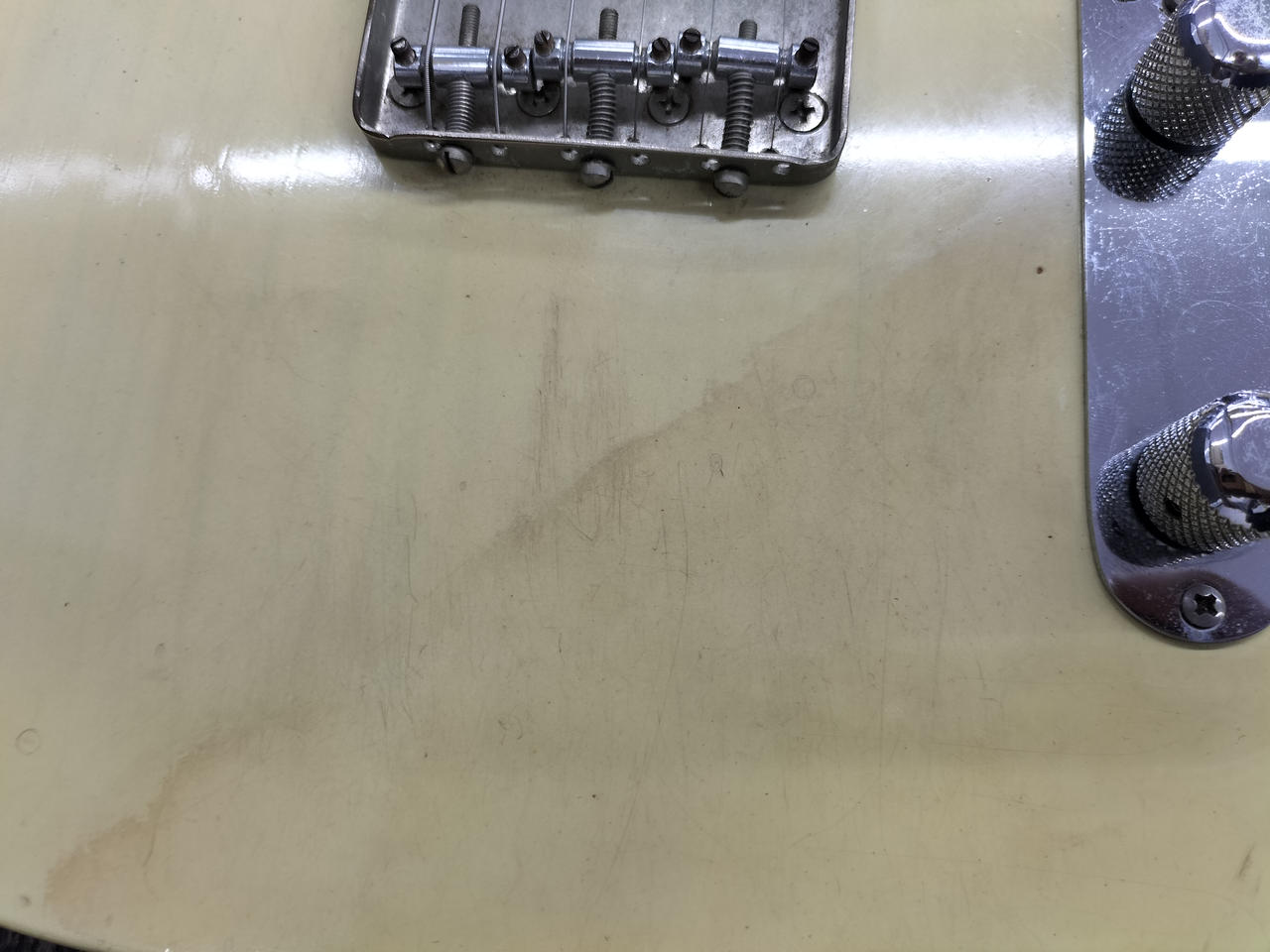 日焼けした味のあるボディ、メイプル指板、ブラックピックガードの王道TLスタイル |