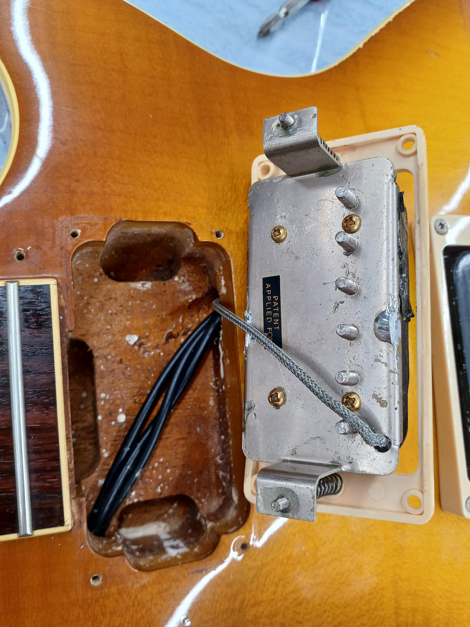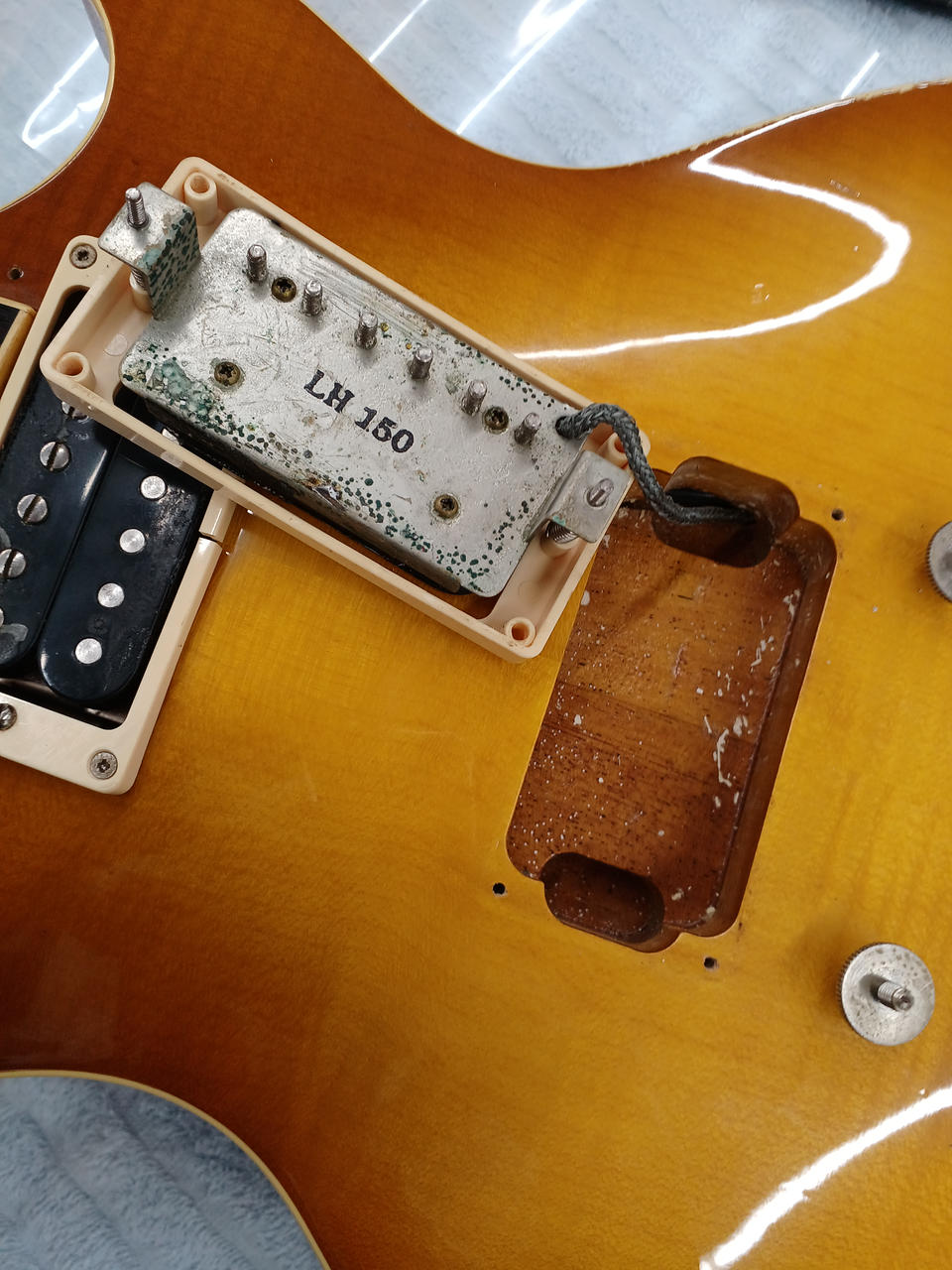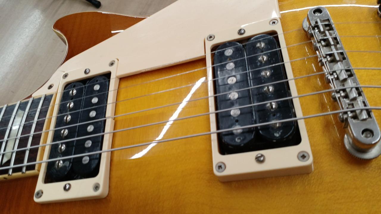詳細不明のBURNYスーパーグレード シリアル無 3点止めロットカバー ディープジョイントではありません バック材のマホは3ピースです。 フロントPU:Gibson製(約8.4kΩ) リアPU:ESP LH-150 社外ギグバッグ付き |