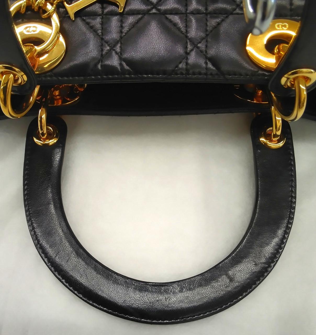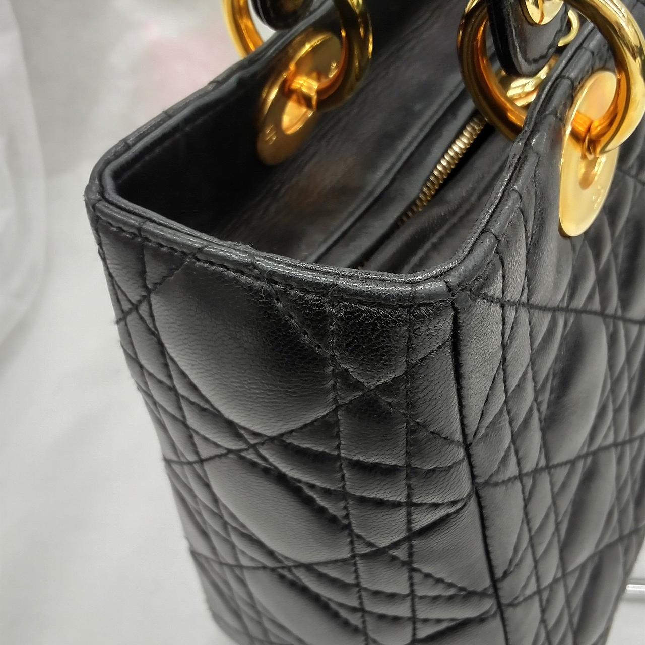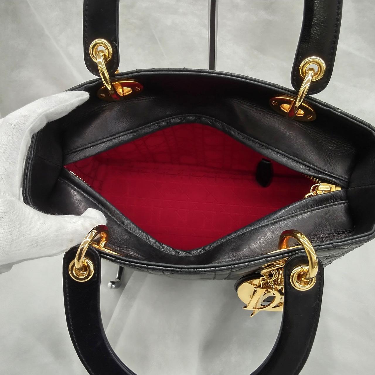レディディオール旧型ですが、可愛らしいカナージュステッチでDIOR のロゴチャームが目を引く、ラムスキンの使いやすいサイズ感のハンドバッグです。 |
