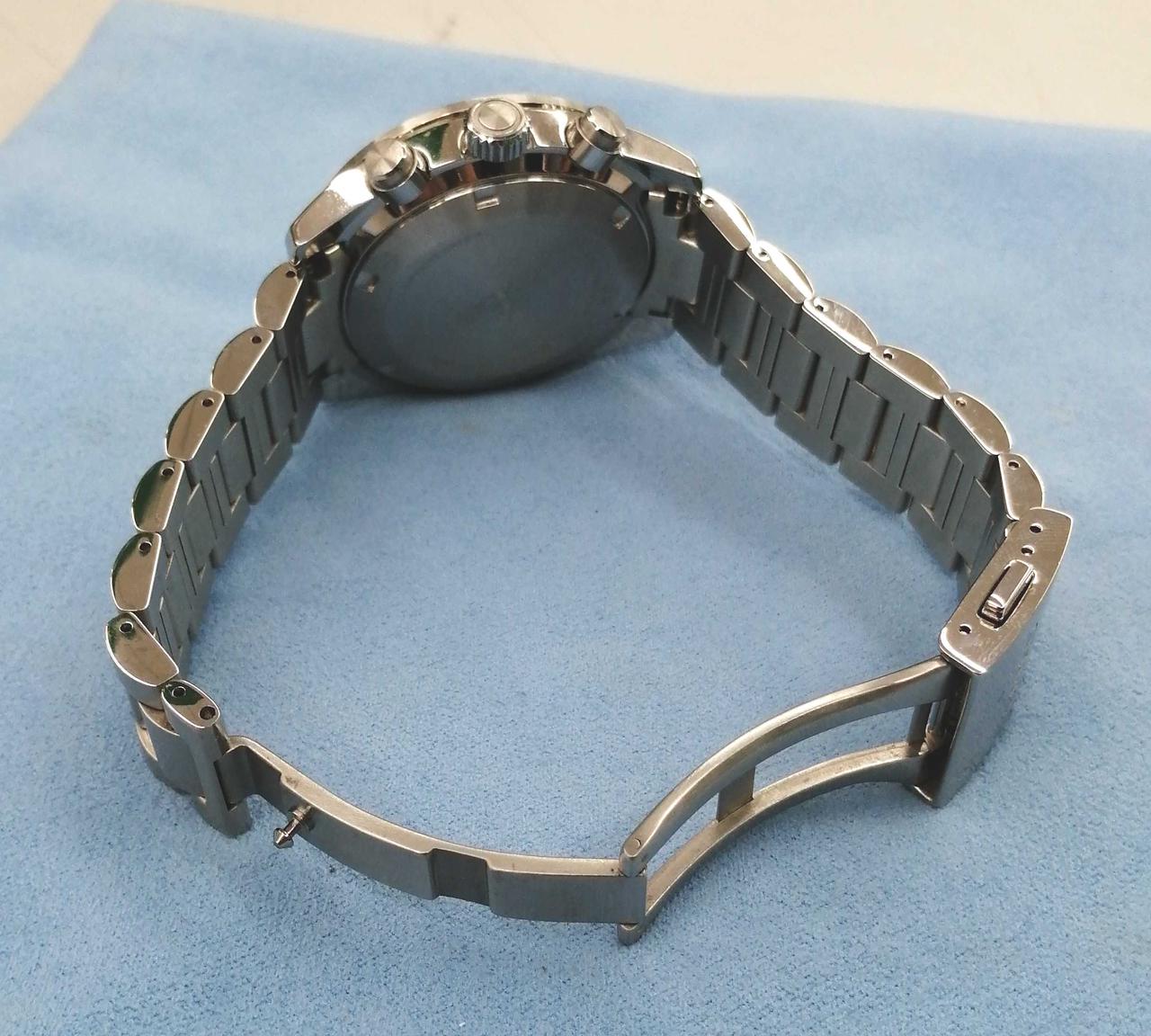 ステンレス/現腕周り約170mm(余りコマあり)/ブッシュ展開式/布、合皮素材の替えベルト(ブラック)付き |