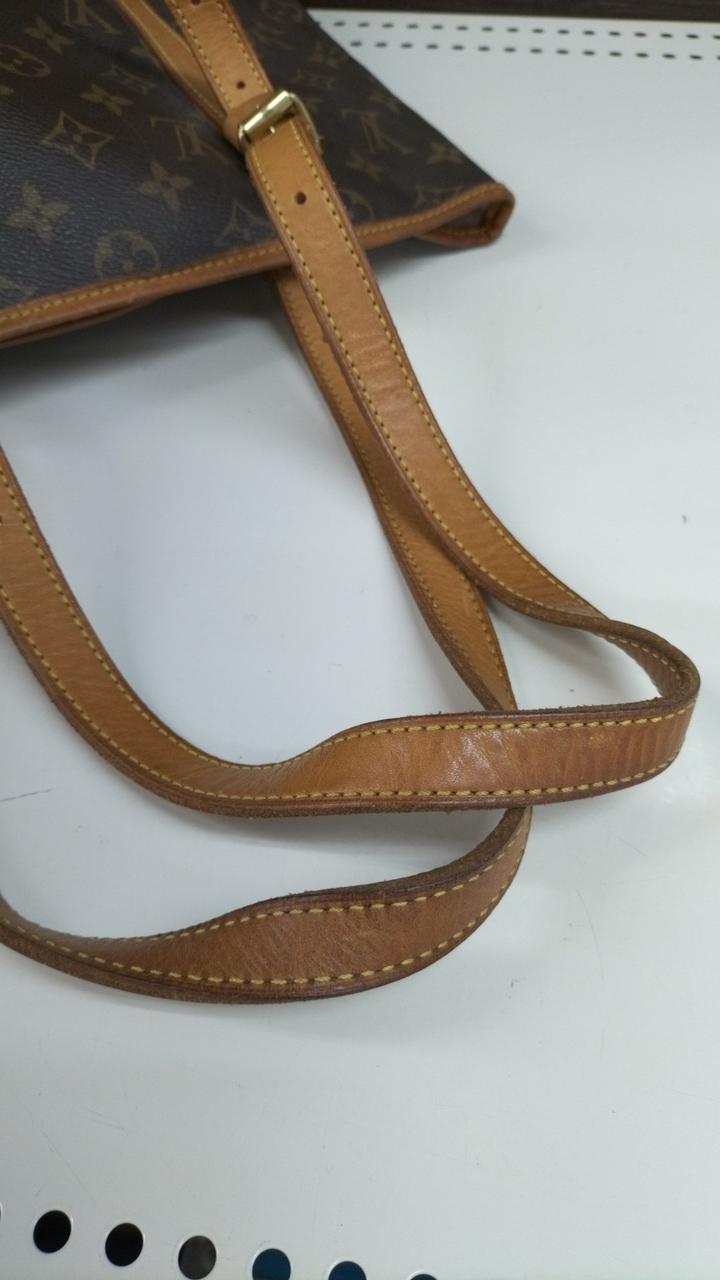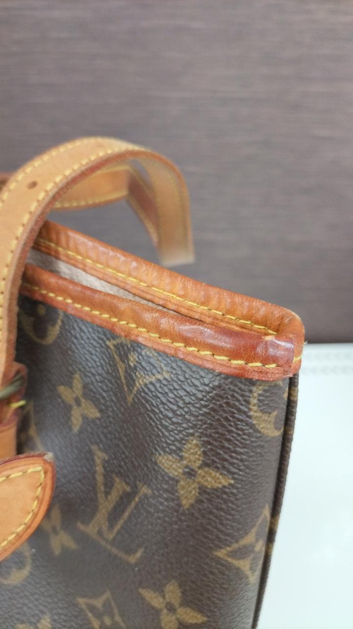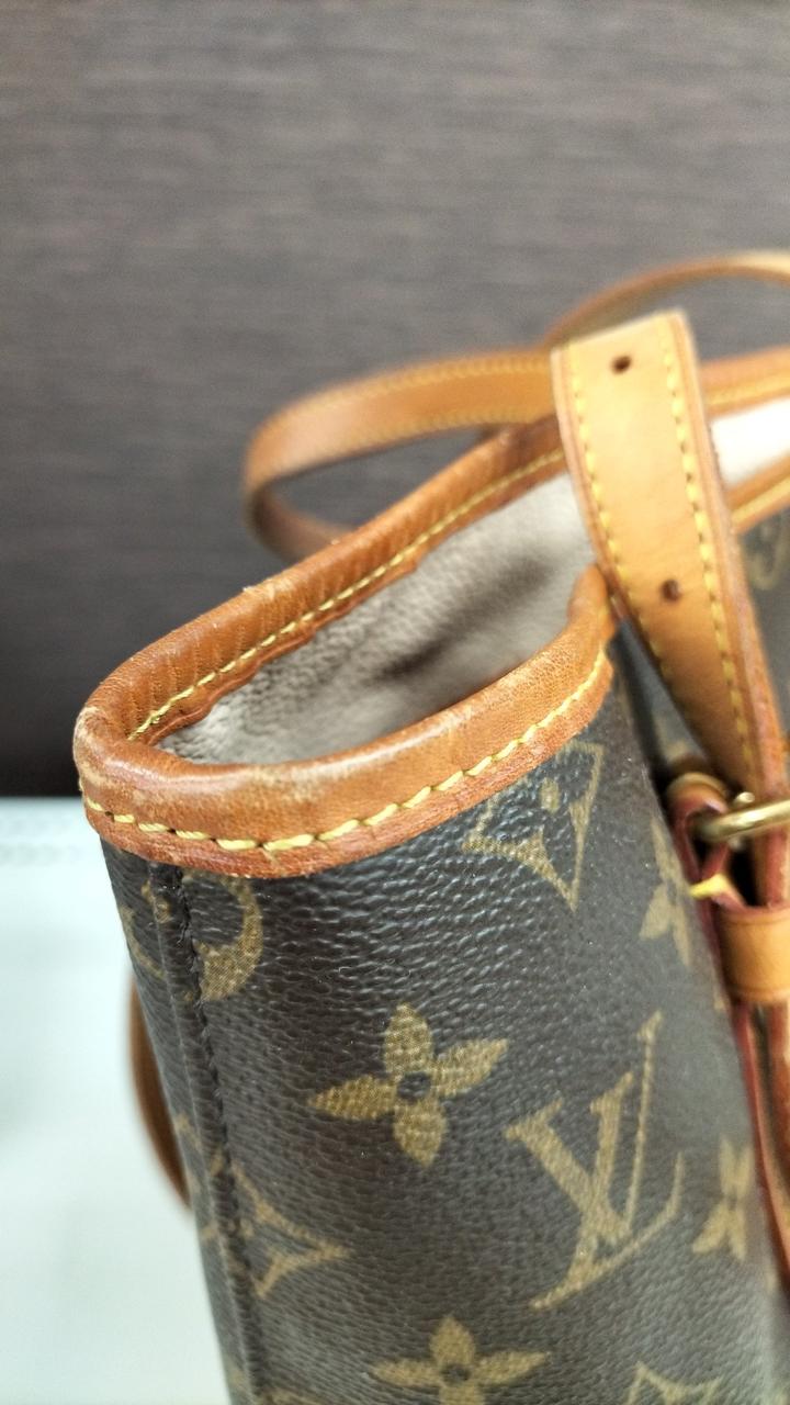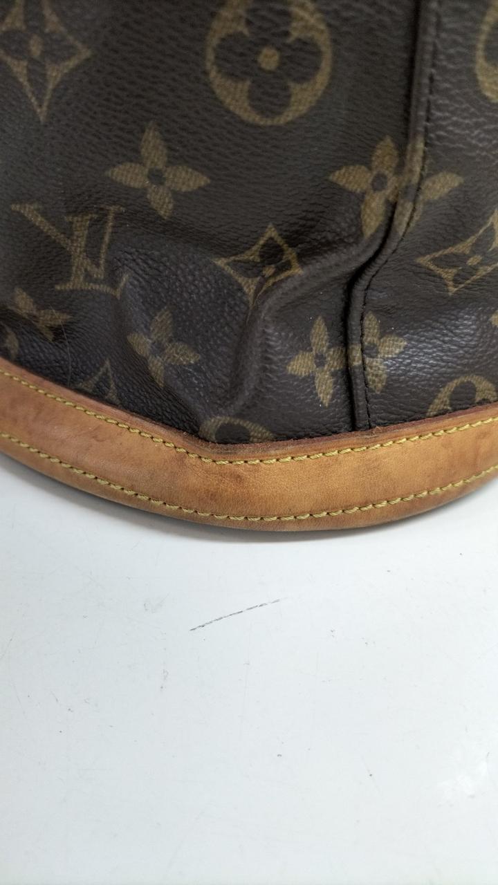 全体的に使用感が感じられます。またレザー部分にもシミや亀裂になりそうな部分も見受けられます。また型崩れしています。内側にもシミのような物が見受けられます。 |