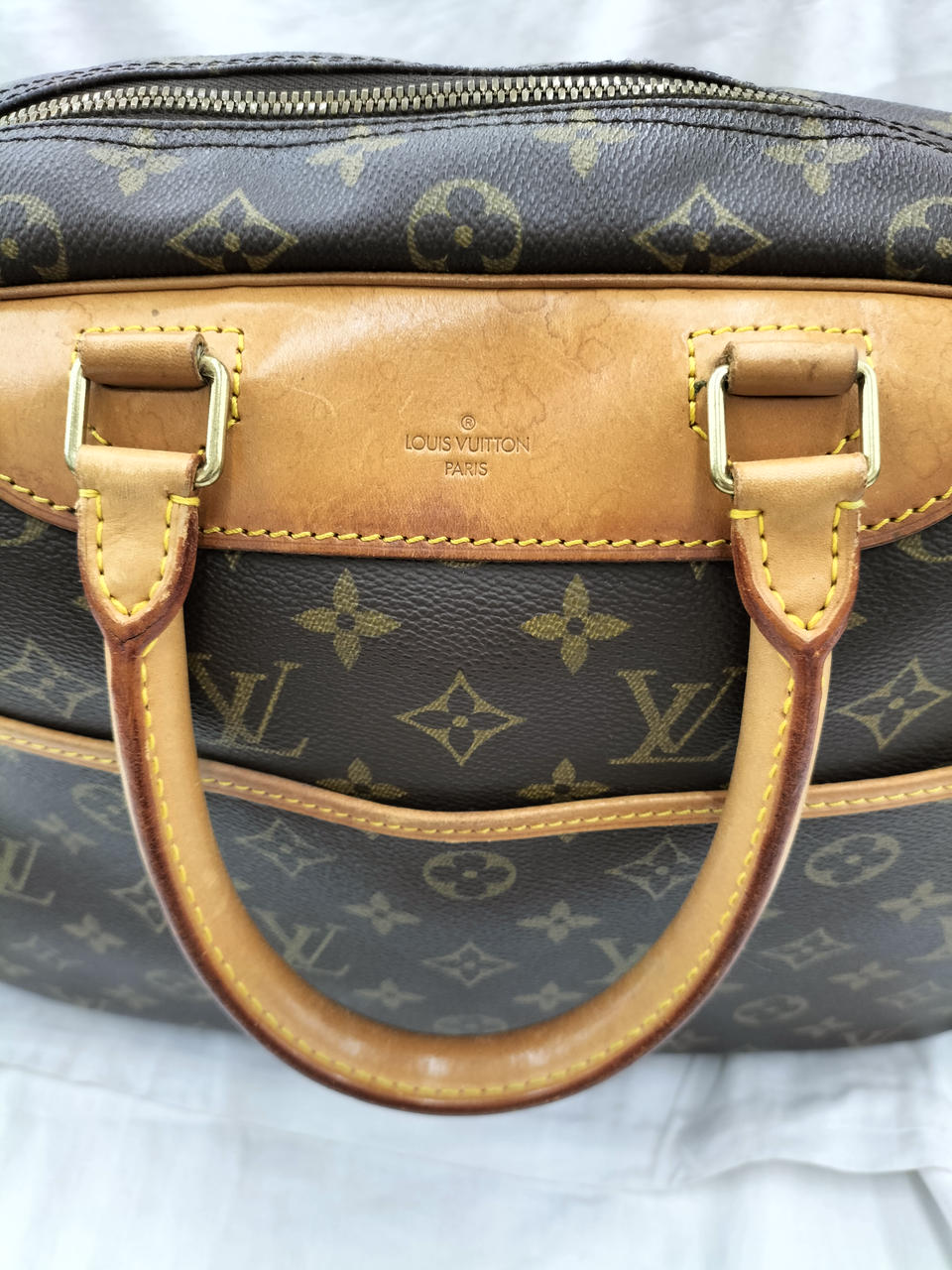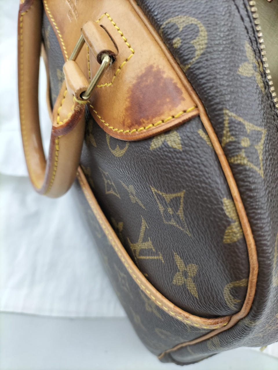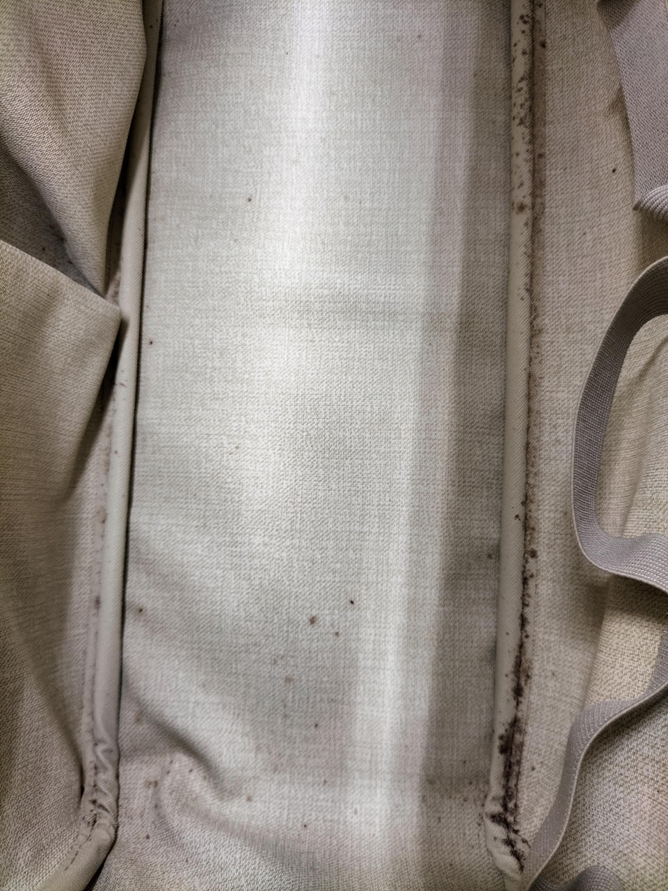 ヌメ革部分シミ、内側もシミ各所に有