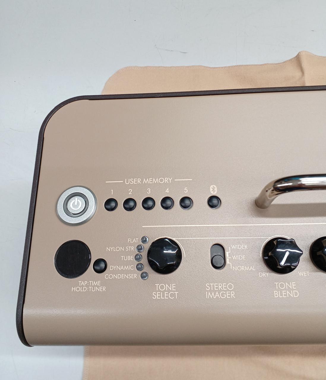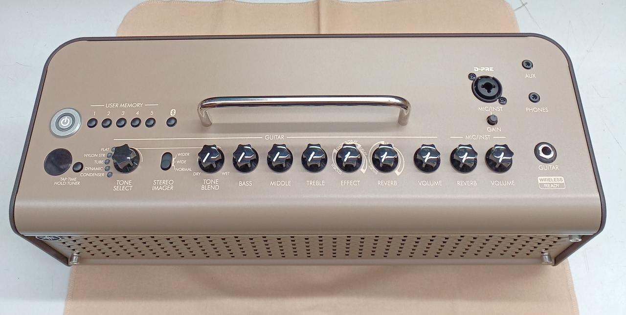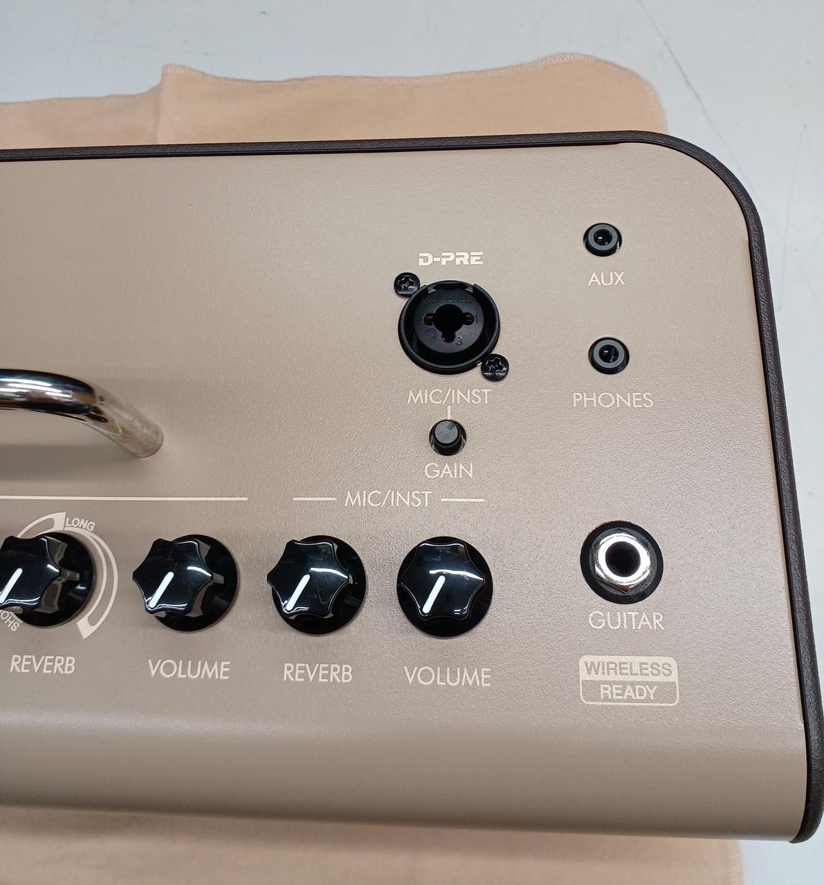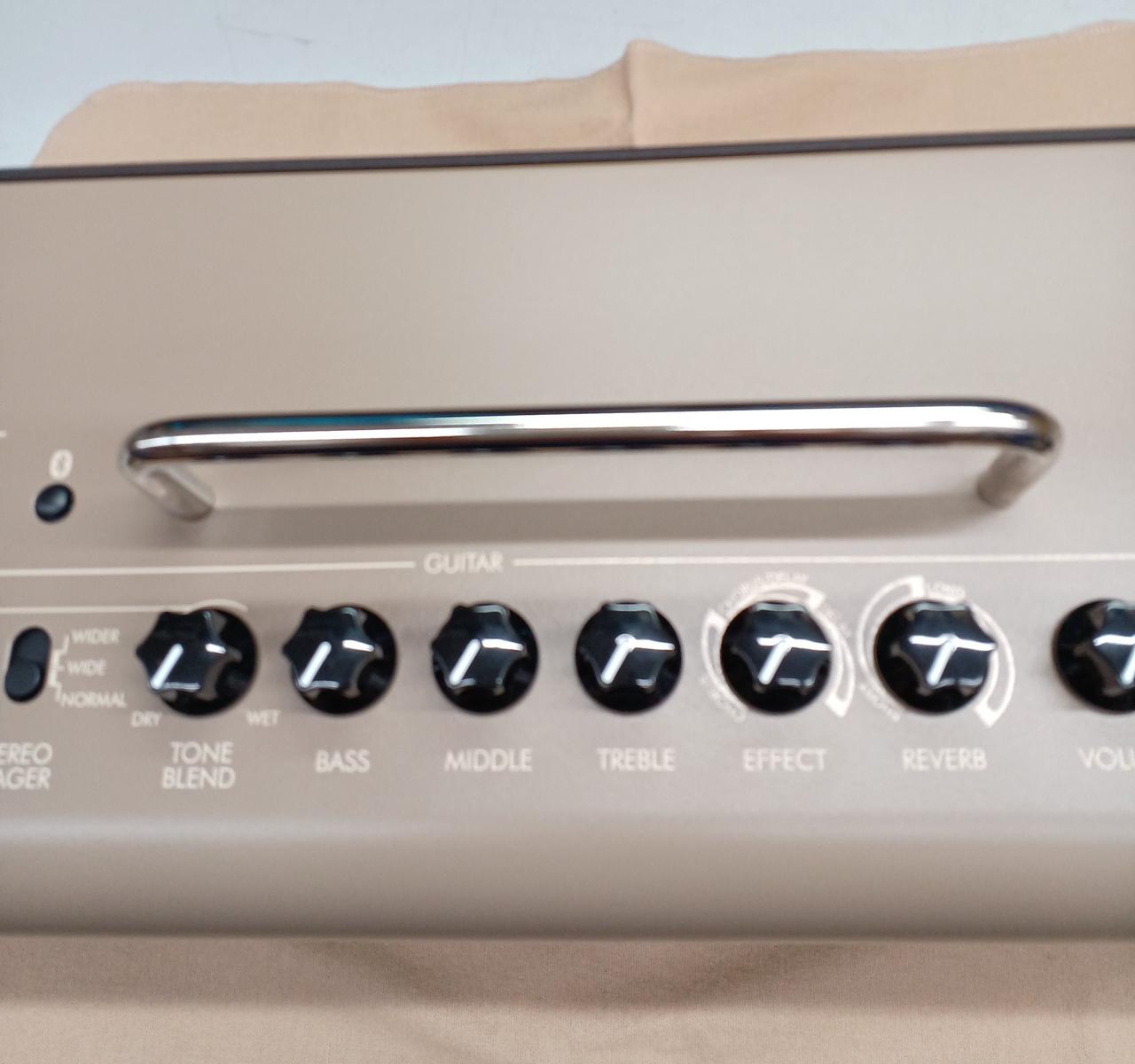 ワイヤレス接続やバッテリー搭載のアコギ用アンプ。Bluetooth接続でスマートフォン等のスピーカーとしても扱え、ギターの他マイク・インスト用のコンボジャックも搭載。空間系エフェクト・リバーブも搭載と多機能です。 |