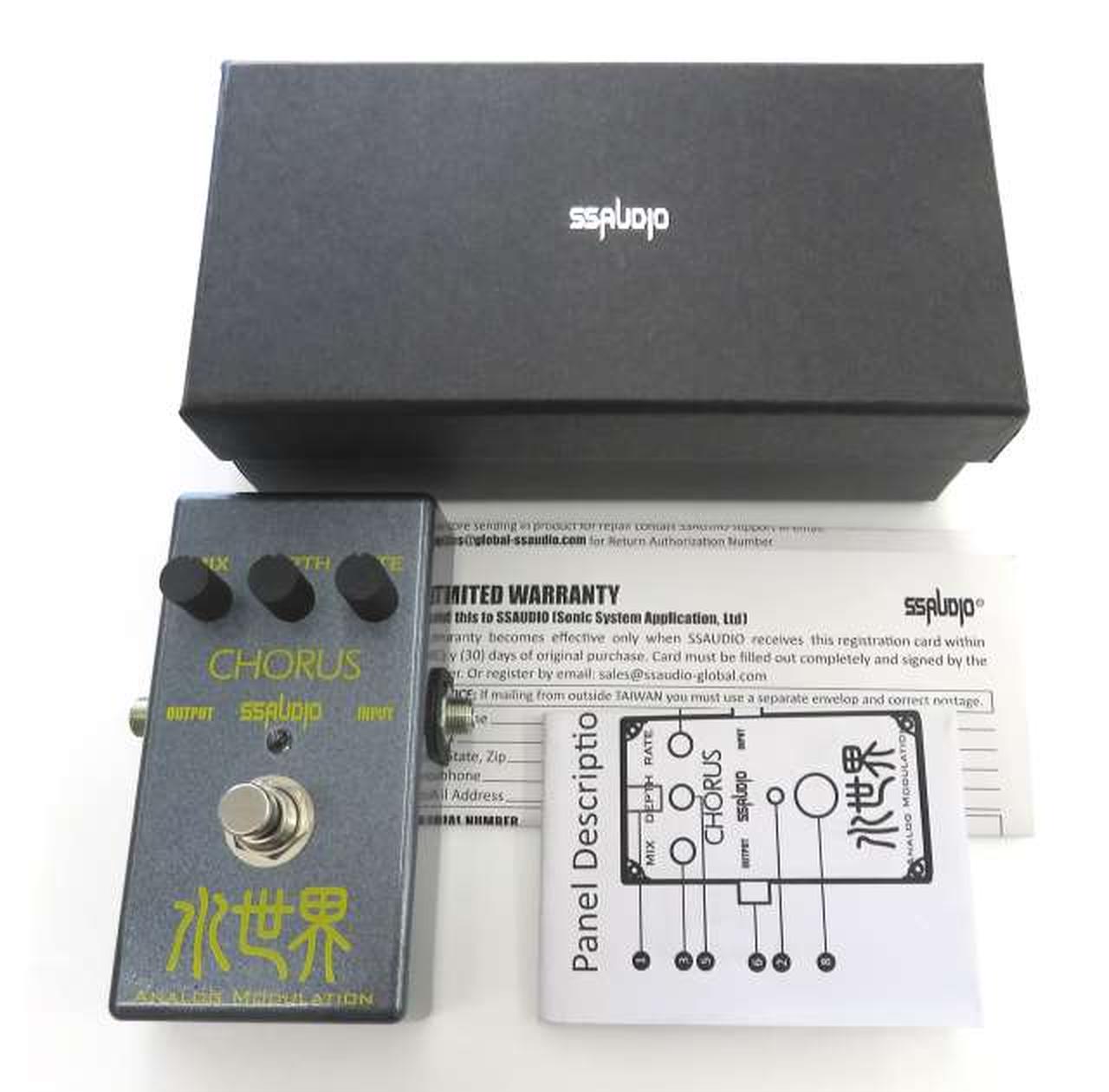 SSAUDIOが考える最良のアナログコーラスサウンドを追求した結果、Panasonic社製のモジュレーションICと、USAのTexas instruments社がデザインするオペアンプを搭載し、ローノイズで艶やかなコーラスサウンドを実現します。 |