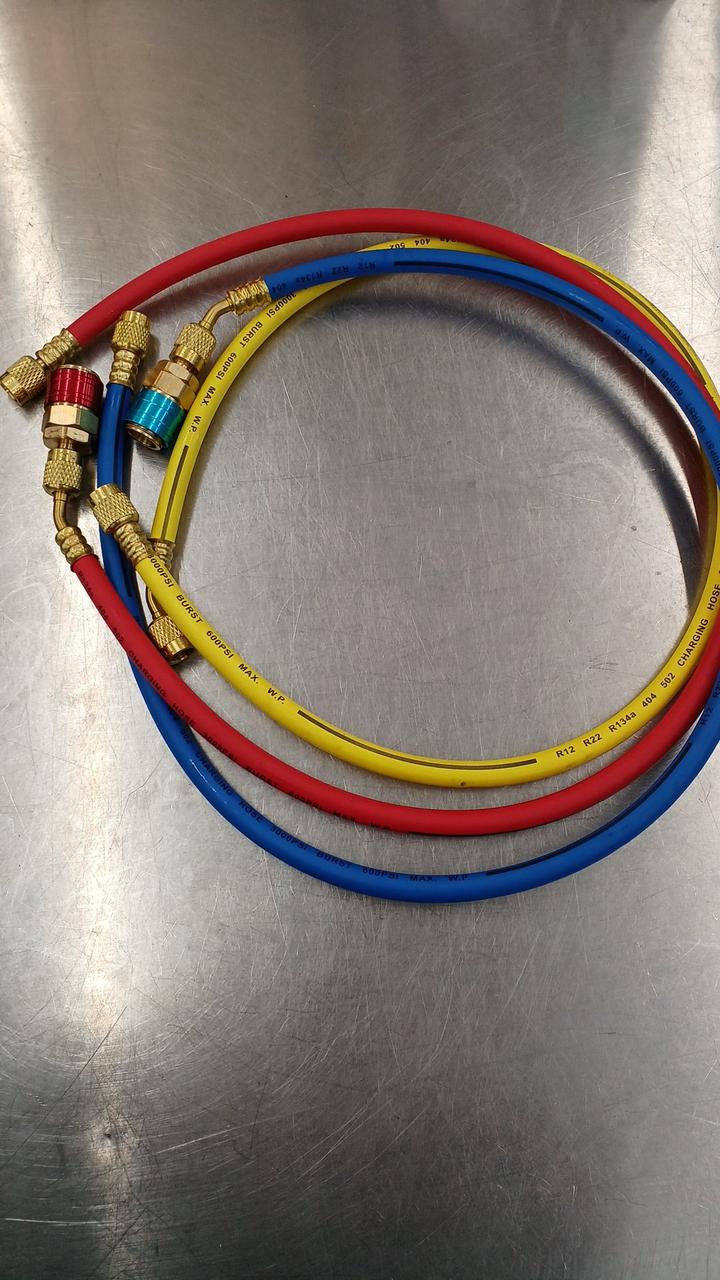 セット内容:マニホールドゲージ、高圧ホース、クイックカプラー(欠品あり)、缶切りバルブ |
