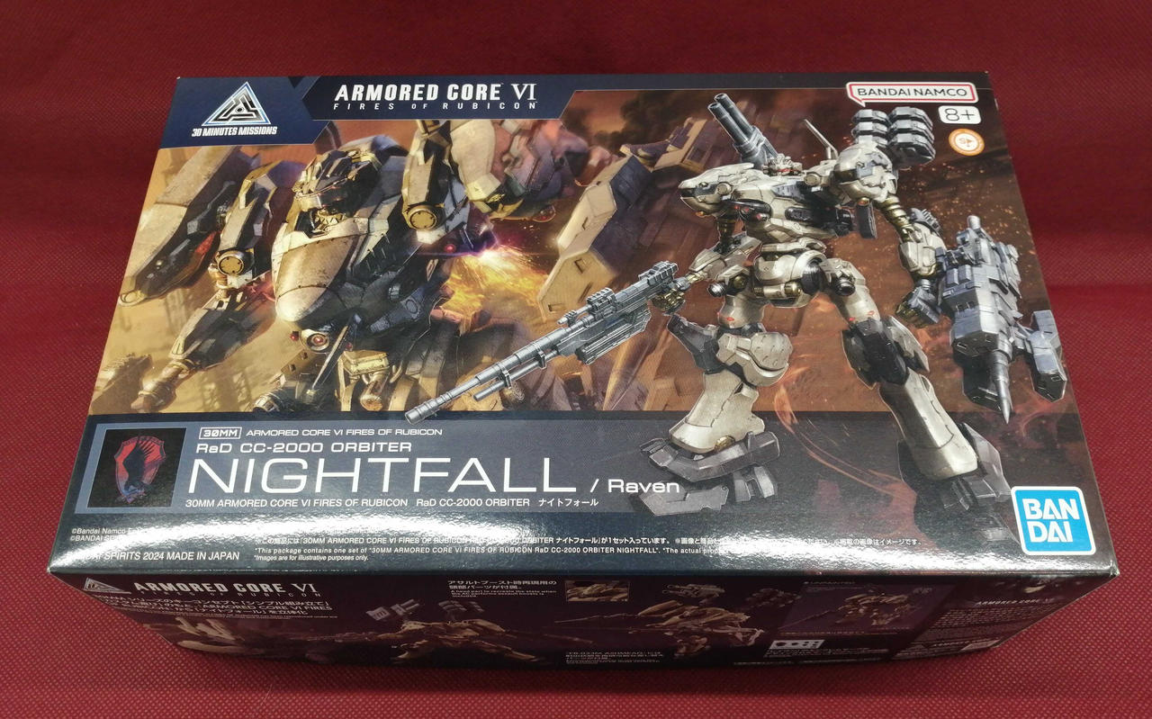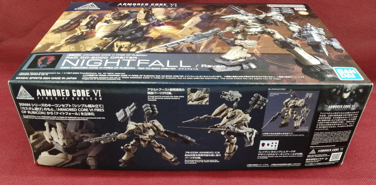 シリーズのキーコンセプト「シンプル組立」「カスタム遊び」のもと、レイヴンが駆る劇中でも印象的なAC「ナイトフォール」が登場。 |