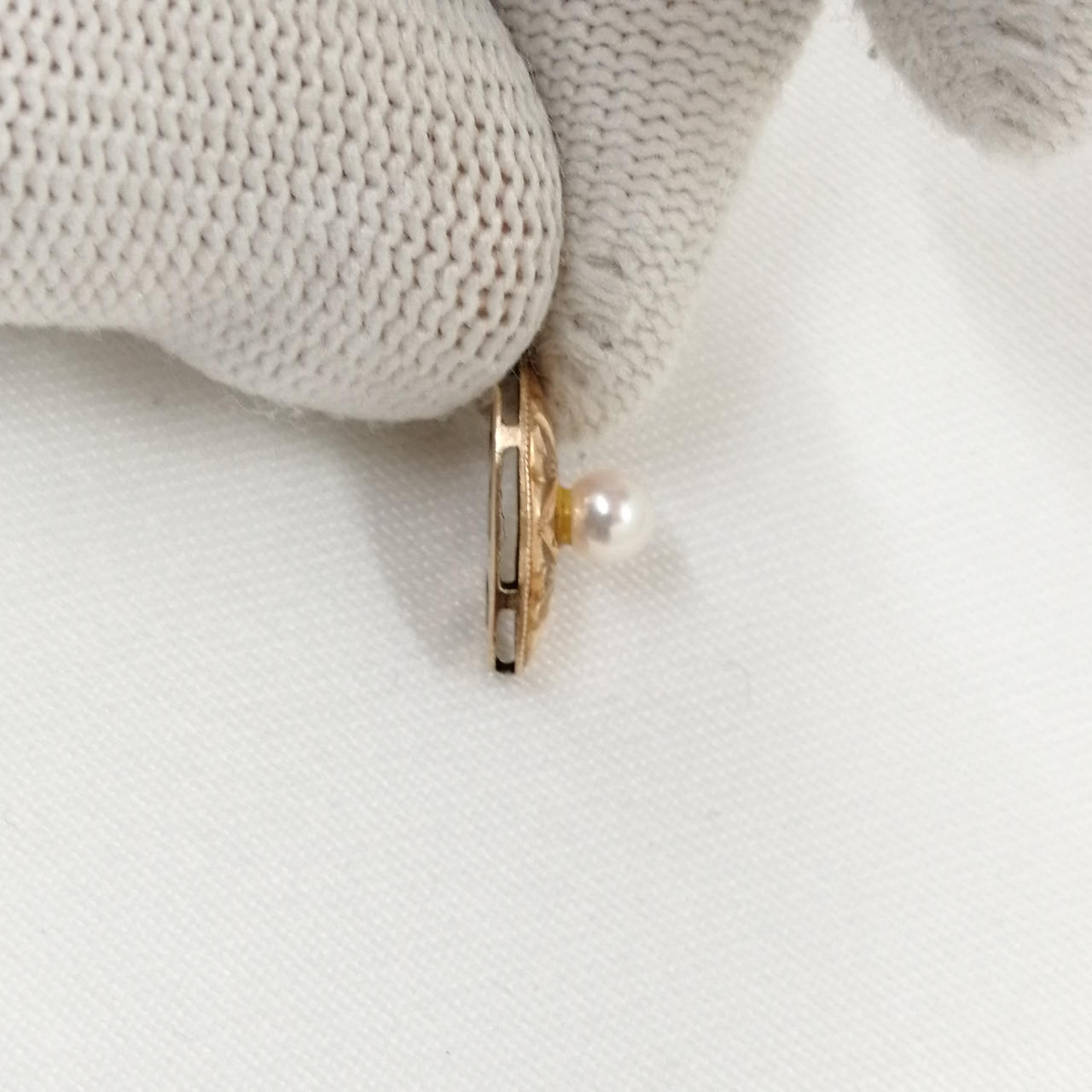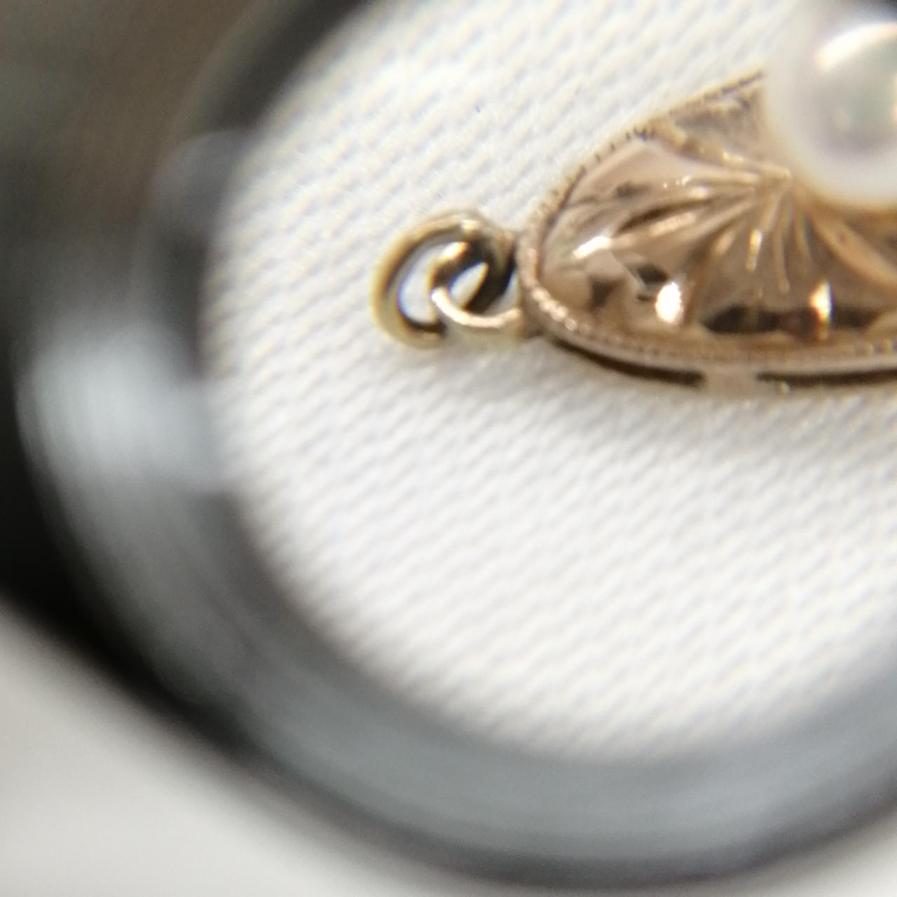 パールのネックレスに付いていたであろう金具のみです。 |