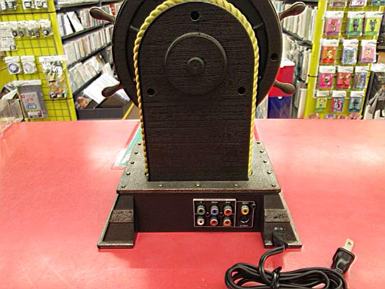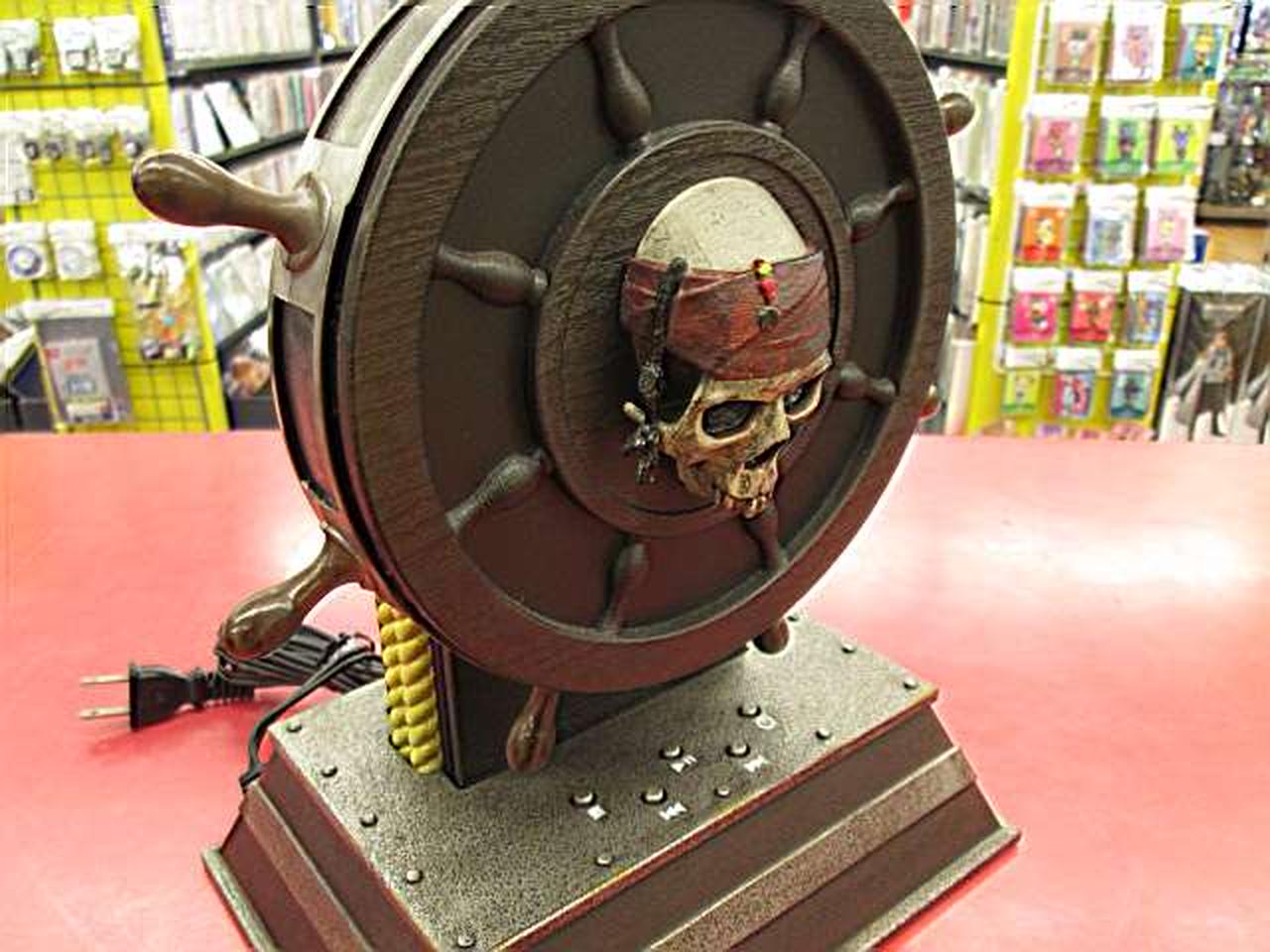 海賊船の舵の形をした特徴的なDVDプレーヤー |