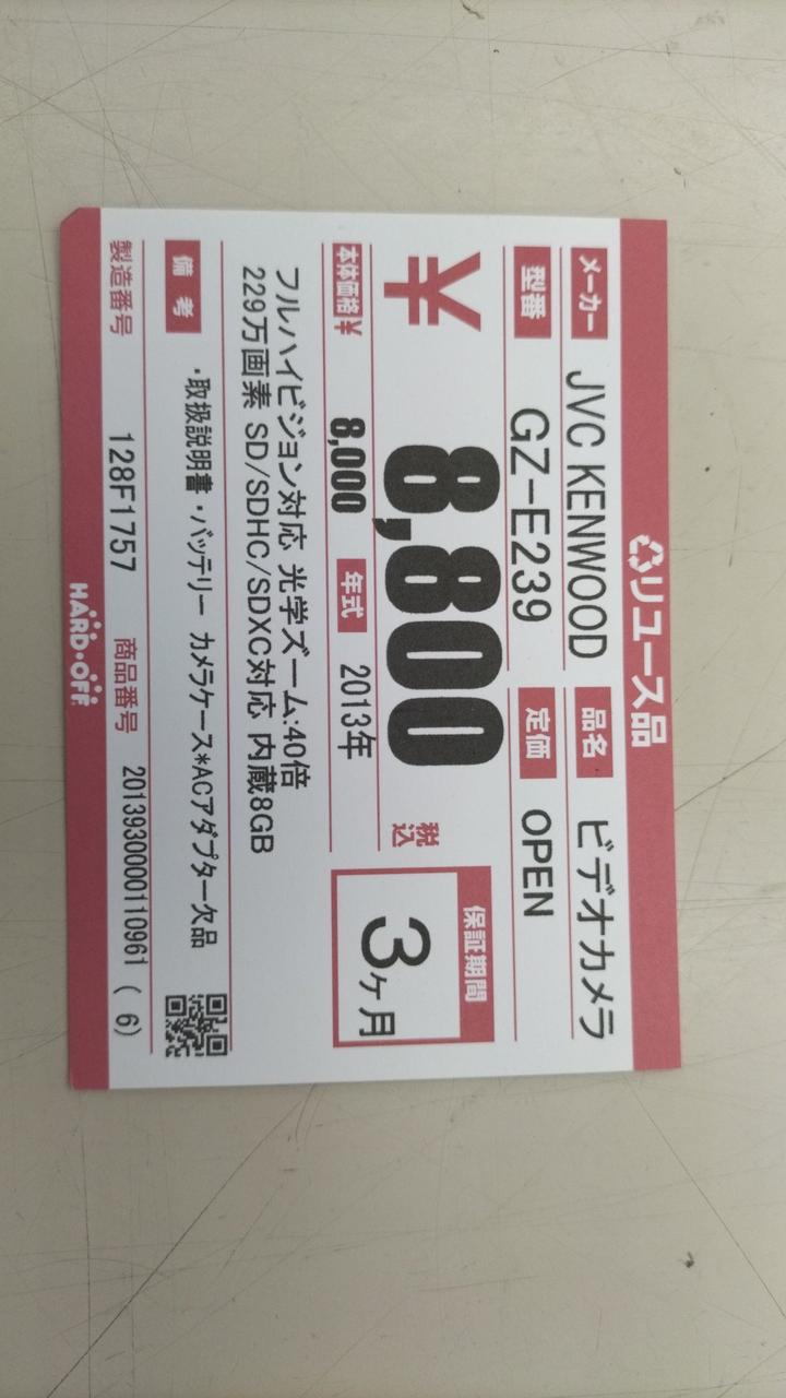取説、バッテリー、カメラケース付属 |