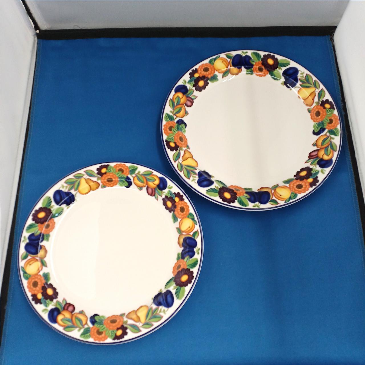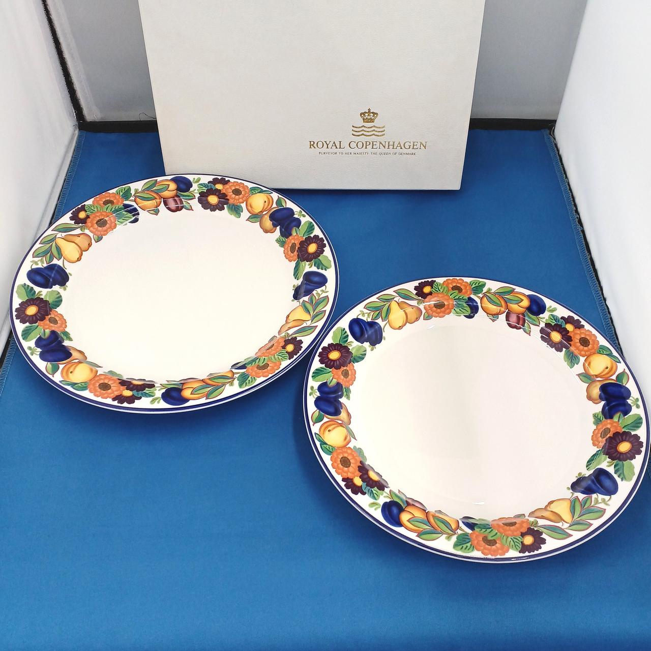 ロイヤル コペンハーゲンの鮮やかで元気な花柄のプレート大小のセットです。