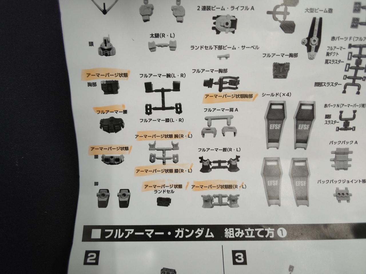 説明書に蛍光ペン(?)での印あり。ただ、内袋未開封なのでそのパーツがないというわけではないようです(写真12・13枚目参照) |