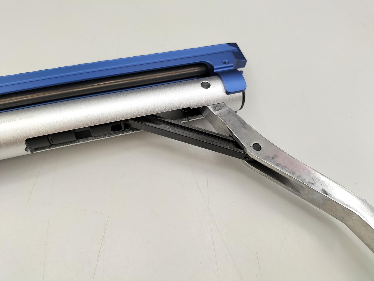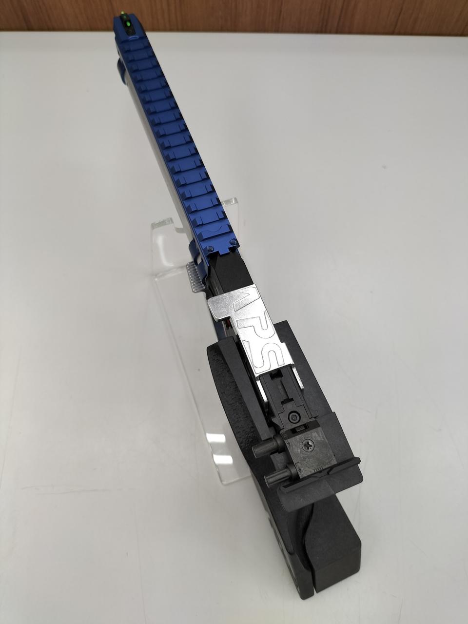 別売のマウントレール(ブルー)に換装しています。 |