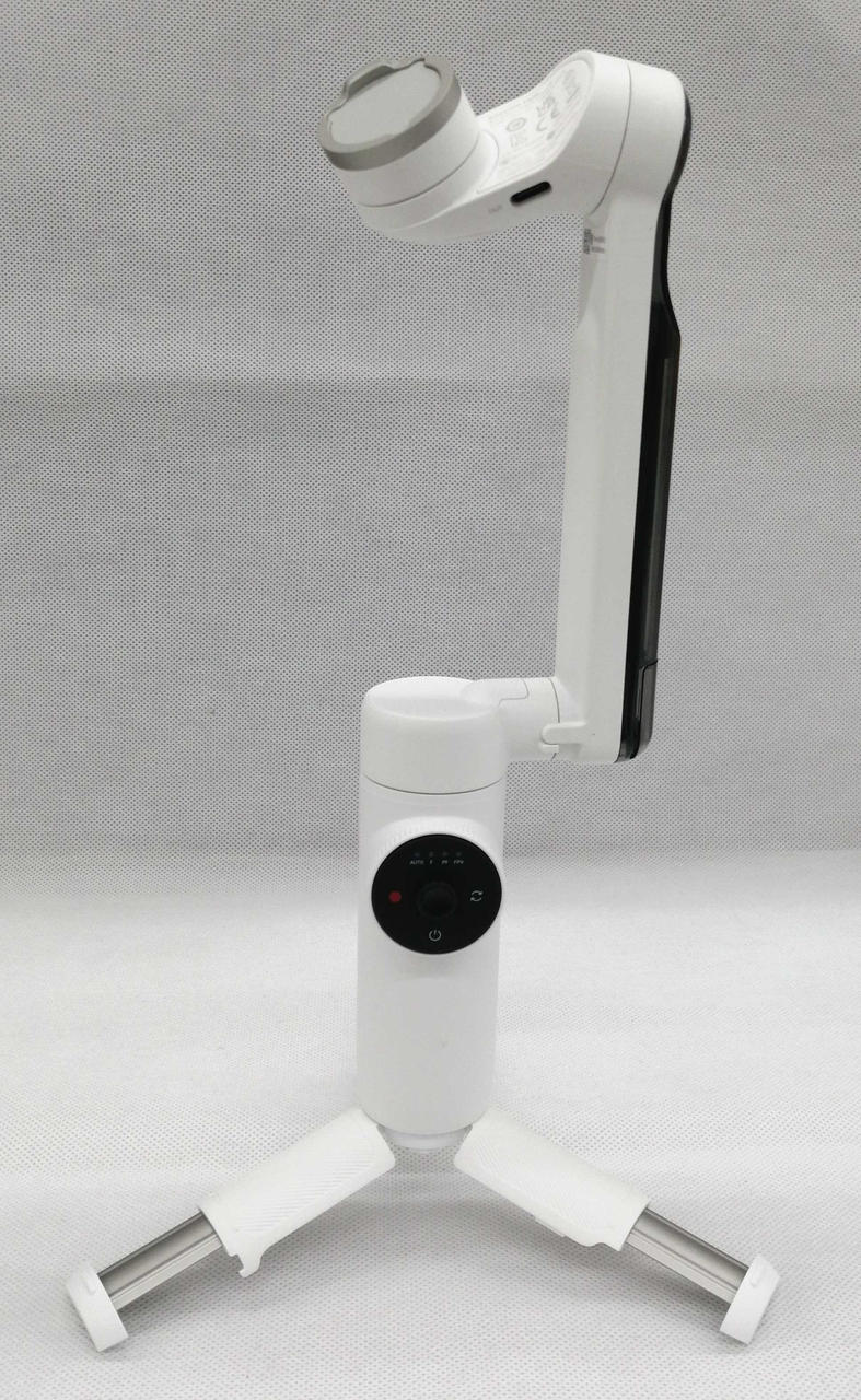 21.5CMまで伸びる自撮り棒と三脚、モバイルバッテリーを内蔵した、多機能なスマートフォン用ジンバル |