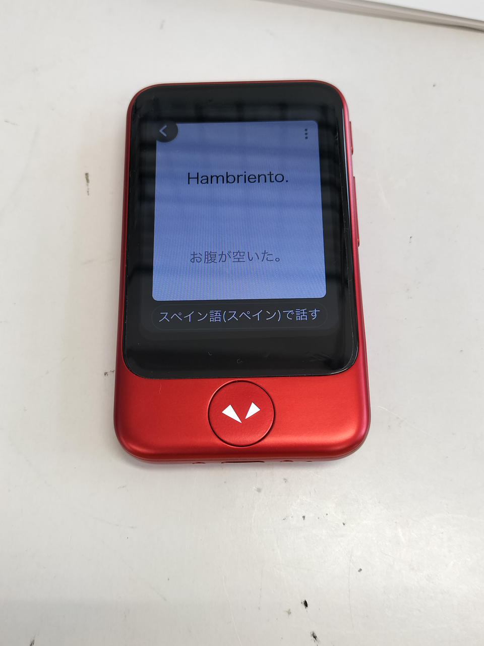 カメラで撮影した文字を翻訳できる機能を搭載した双方向の音声翻訳機。カメラで文字を撮影すると55の言語を自動で認識して翻訳し画面上に表示 |