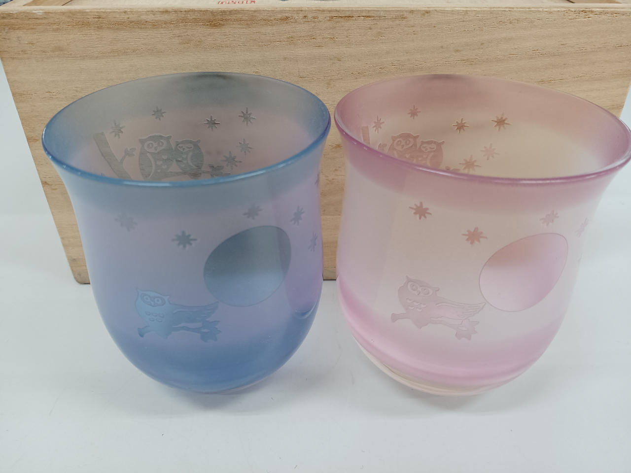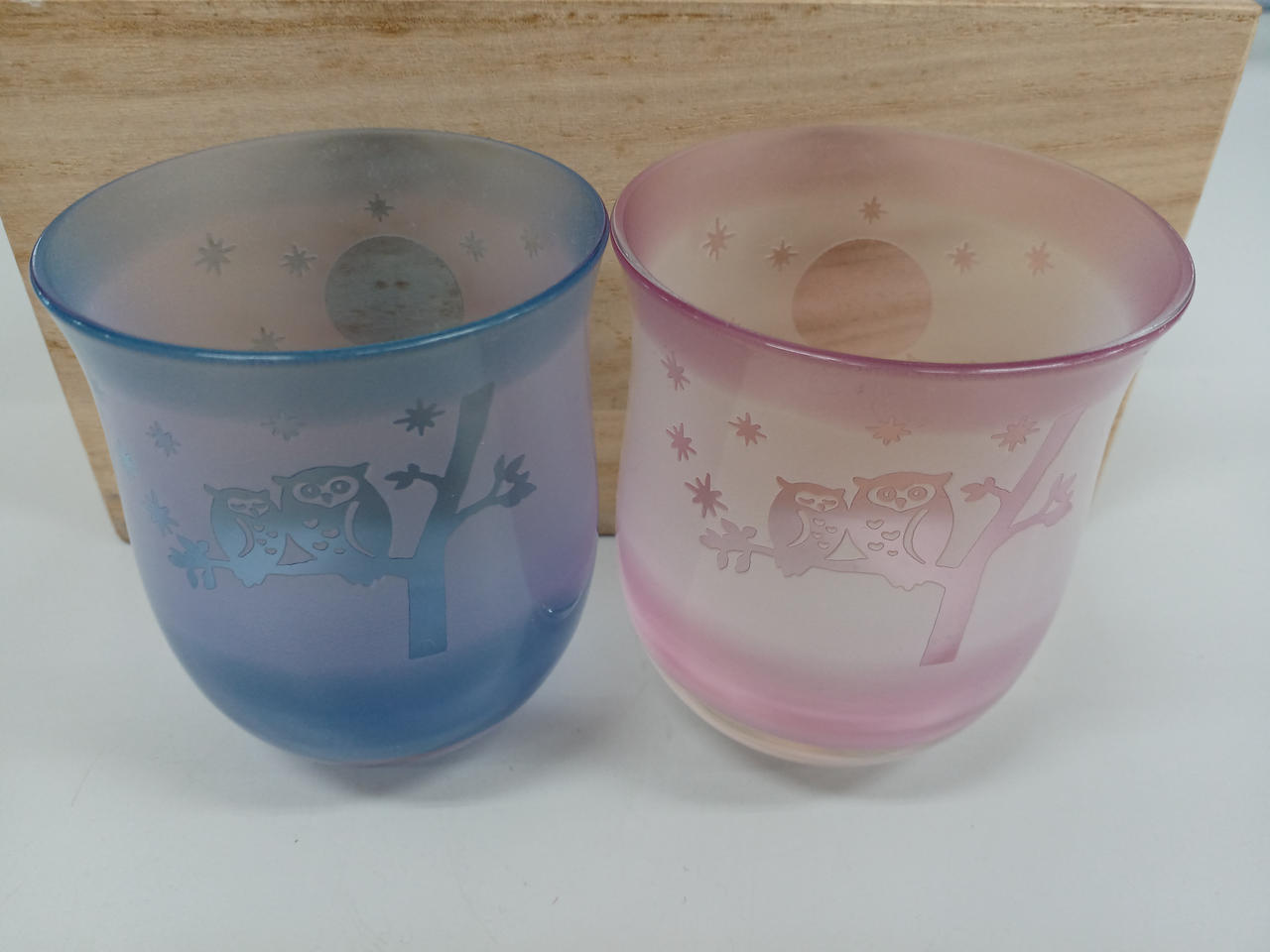 フクロウが可愛いペアグラスです。お月見にいかがでしょうか