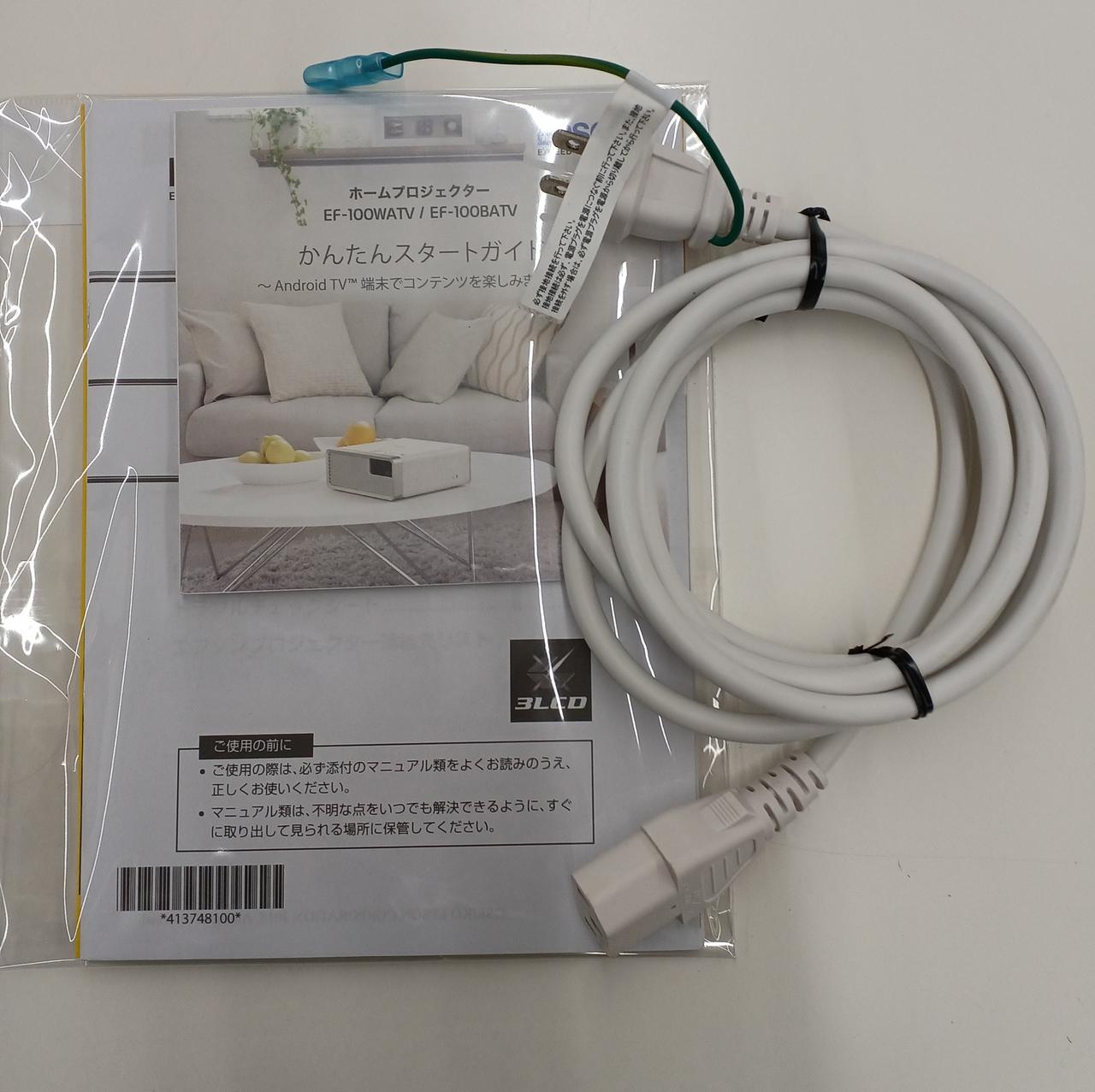 箱、説明書、リモコン、電源ケーブル付属 |
