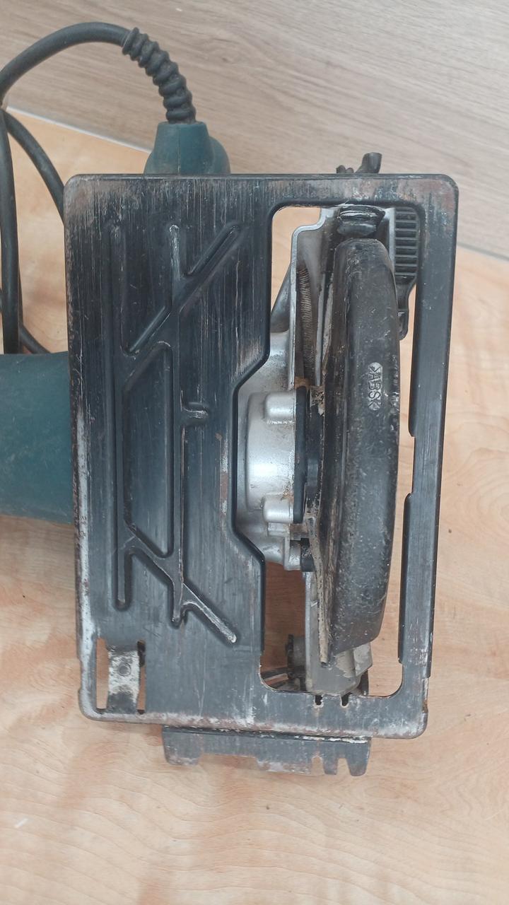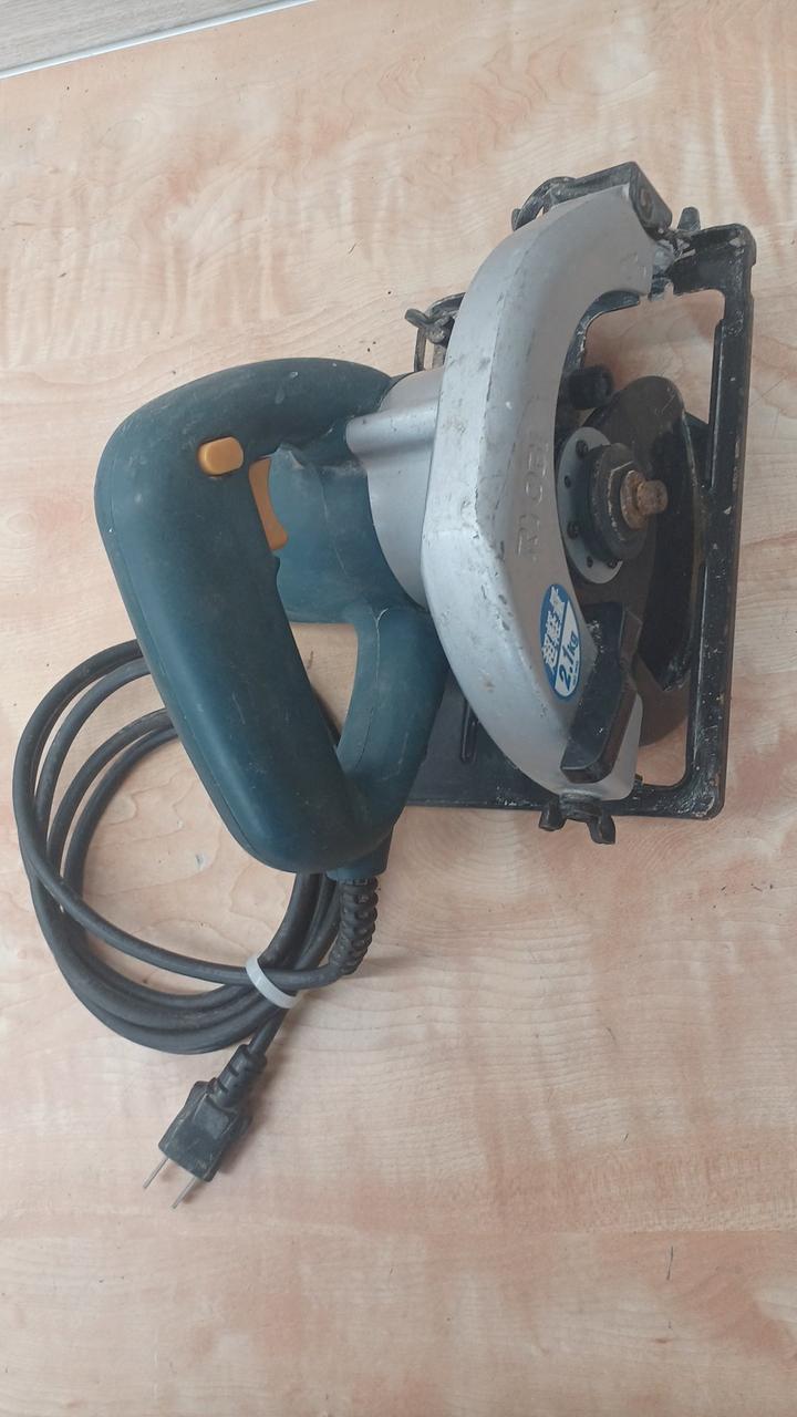 直線切りに安全なブレーキ付電気丸ノコ、板材からタル木切断に |