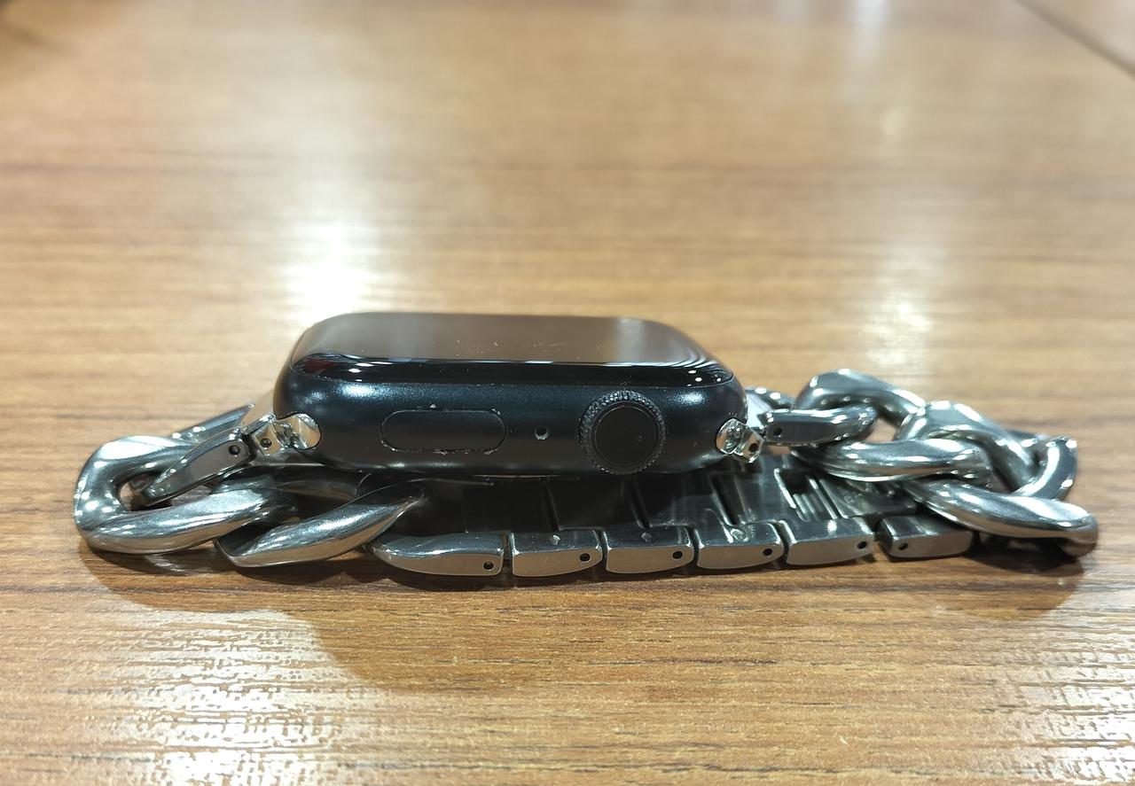 本体サイズをほとんど変えずディスプレイだけを大きくした「Apple Watch」(GPSモデル)。「常時表示Retinaディスプレイ」を採用し、より明るく光る!