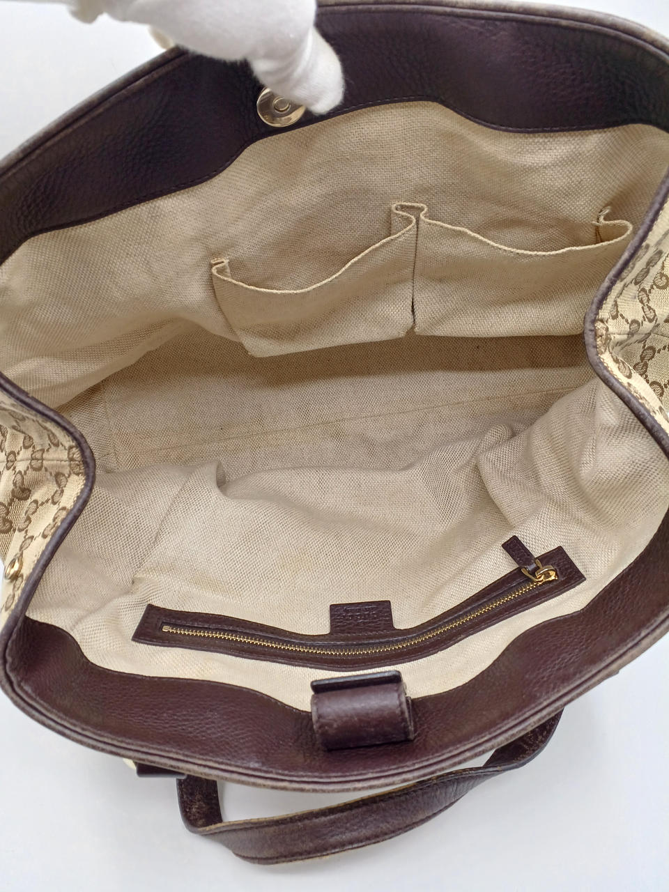使用感があり、角や手持ち部分に剥がれがあります。内側にも汚れあります。 |