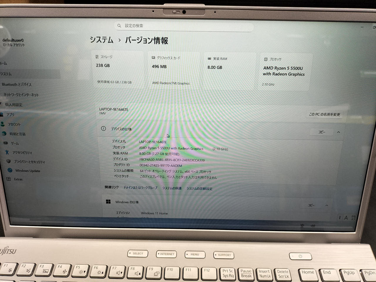 OS:WINDOWS 11 HOME CPU:AMD Ryzen 5 5500U/2.1GHz/6コア |